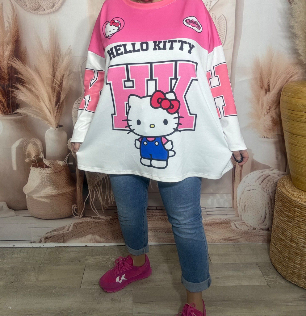 Sweat ample rose bonbon Hello Kitty Rétro US University Girl du 40 au 52/54