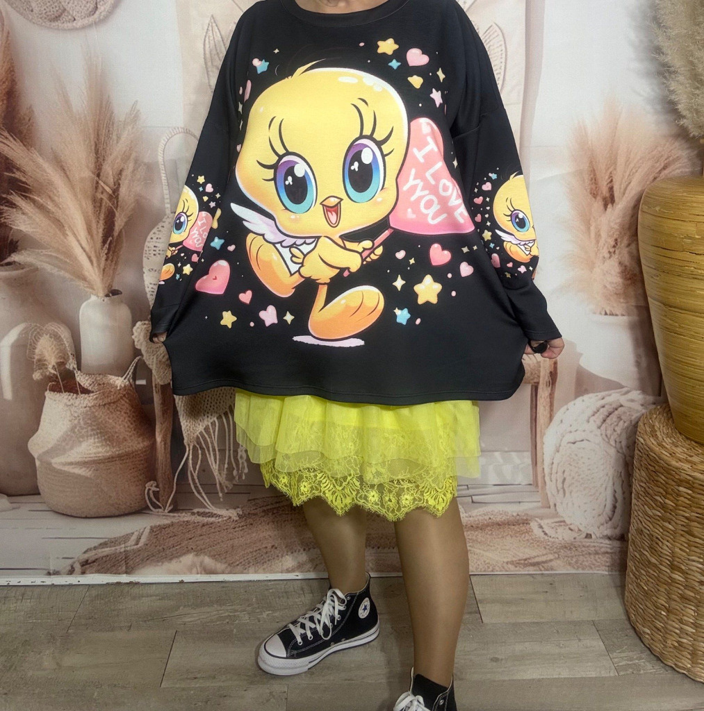 Sweat ample noir Titi Baby Angel Love étoiles coeurs multicolores du 40 au 52/54
