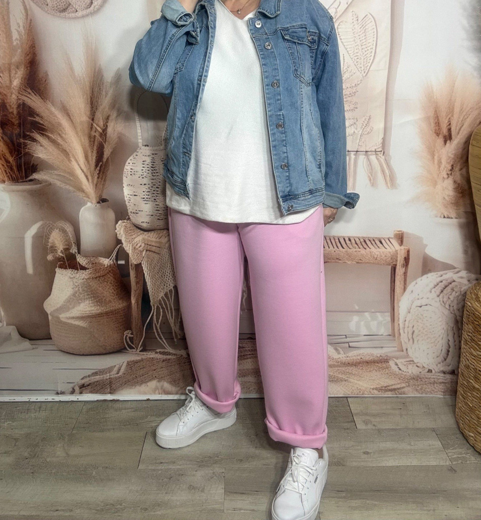 pantalon façon jogg rose layette bébé boutons dorés + ceinture confort ++++ du 38 au 50