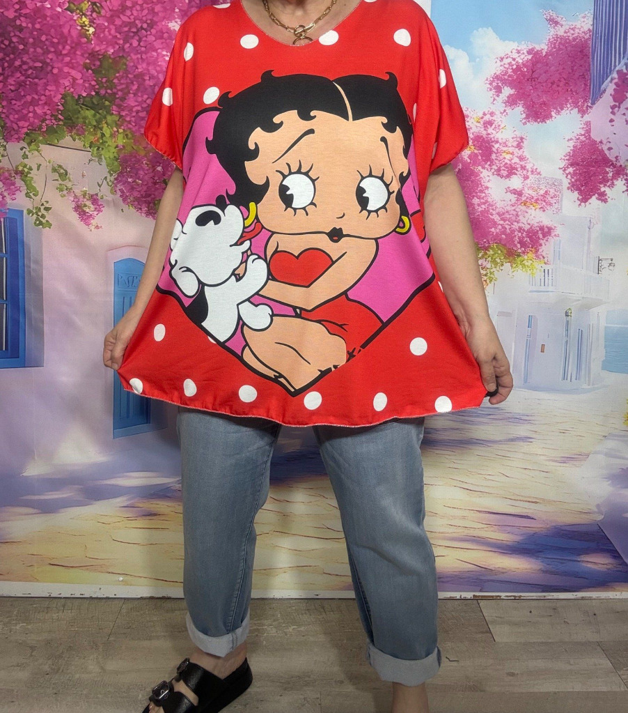 Pull fin SANS LAINE blanc & rouge Betty Boop et Minnie du 40 au 50/52