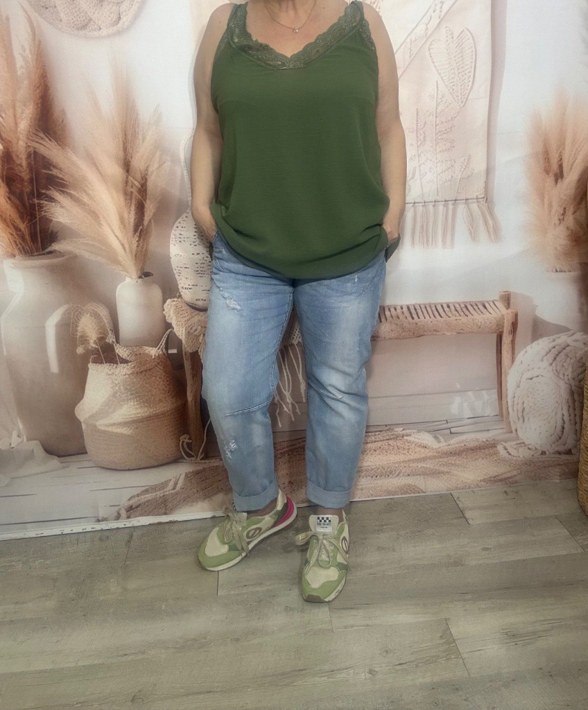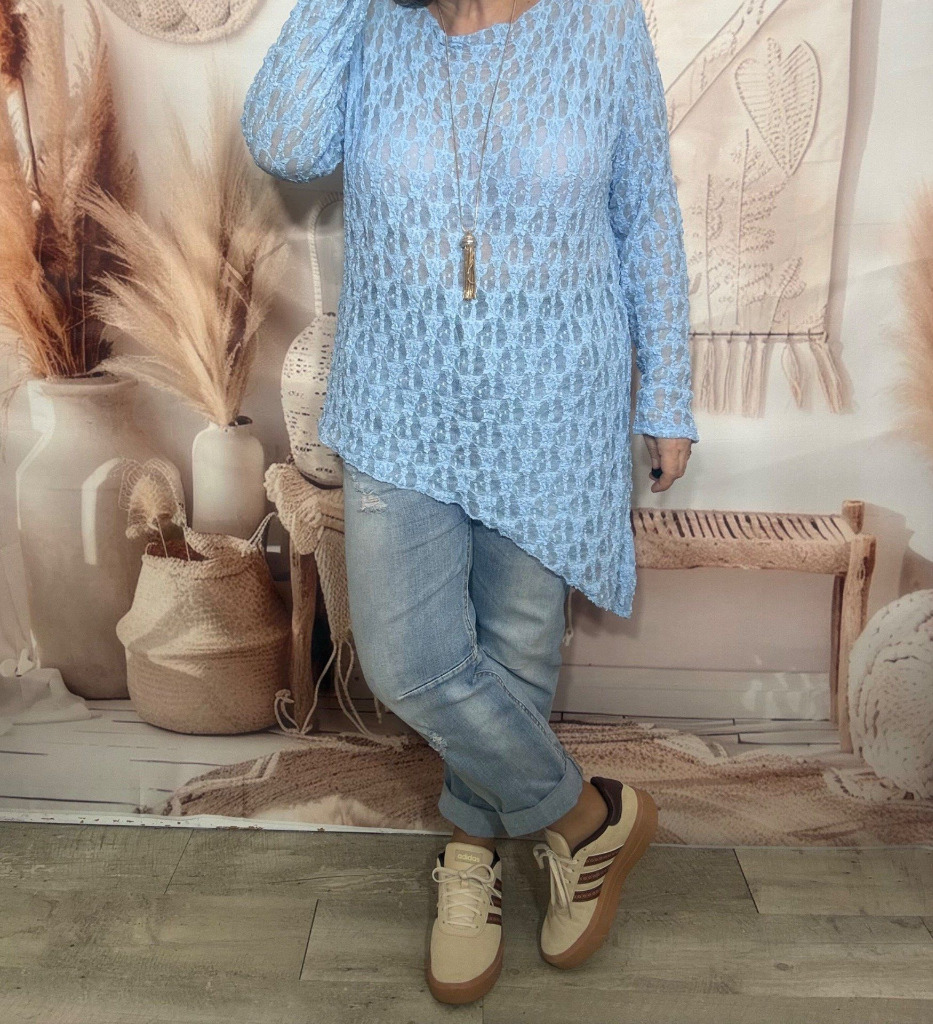 Top asymétrique dentelle bleu ciel manches longues confort +++ du 36 au 50