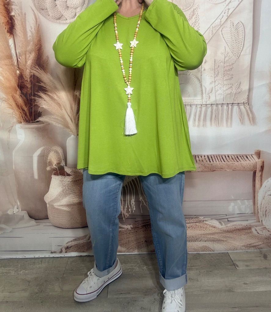 Top trapèze vert pistache manches longues col V collection Les Basiques du Dressing du 40 au 54