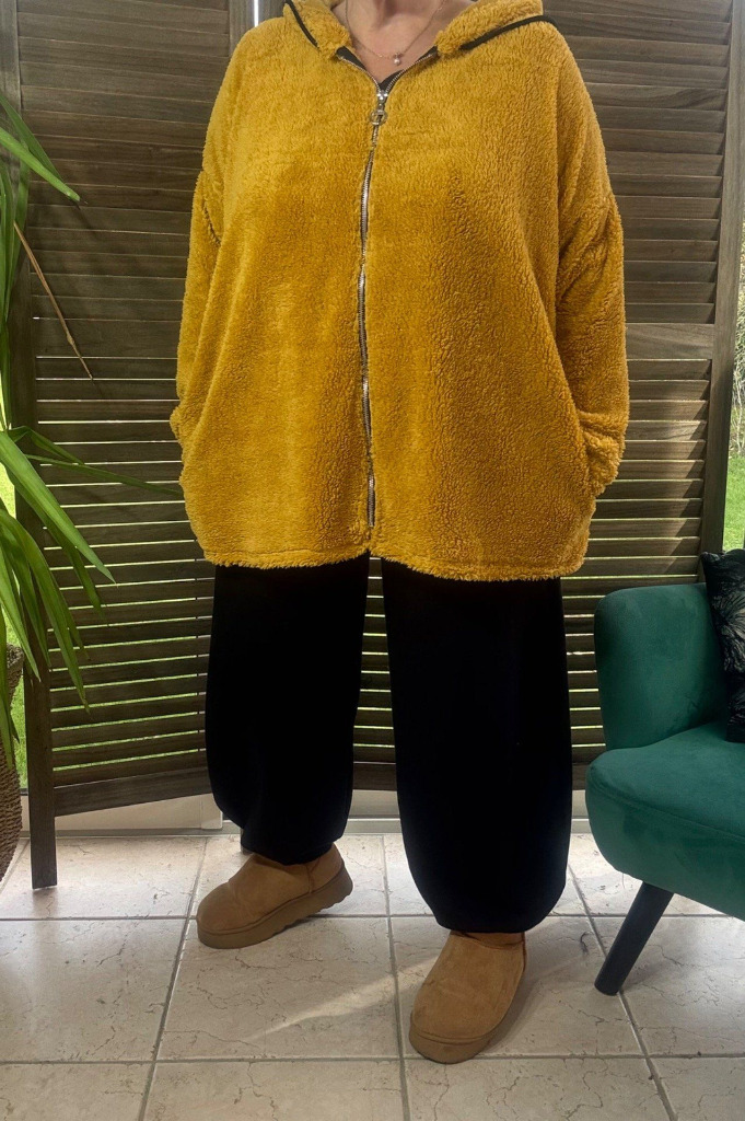 Gilet à capuche peluche Pilou-Pilou moutarde douceur +++ du 40 au 54/56 et même +