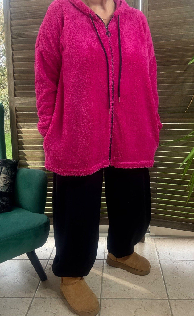 Gilet à capuche peluche Pilou-Pilou Fuschia douceur +++ du 40 au 54/56 et même +