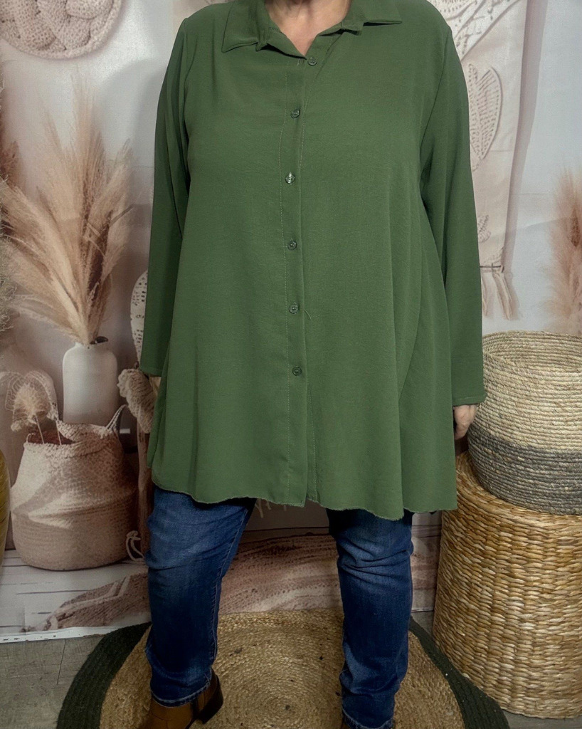 Chemise trapèze oversize Kaki confort ++++ du 42 au 52 et même +