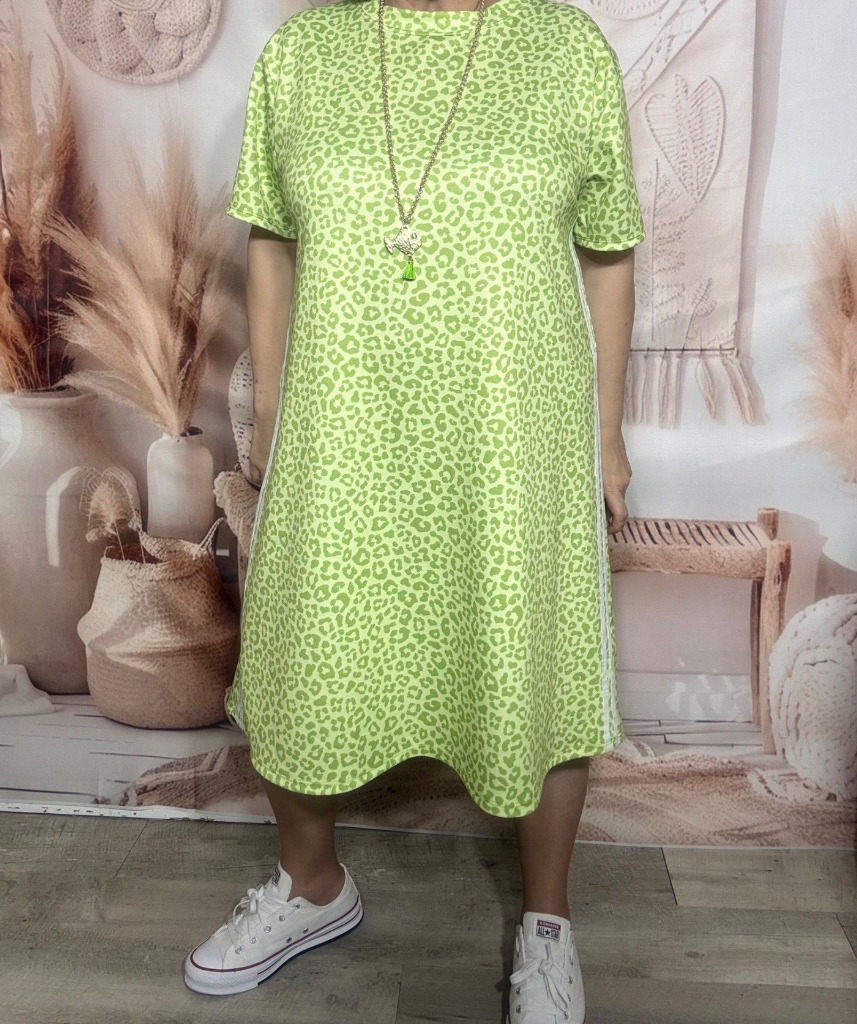 Robe-sweat ample Léopard Pistache & Vert pomme bandes côtés du 40 au 52