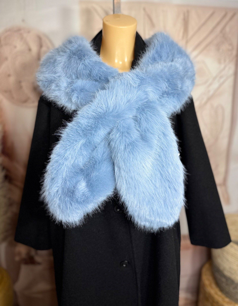 Echarpe fausse fourrure Bleu clair toute doublée et ajustable douceur ++++ TOUTES TAILLES