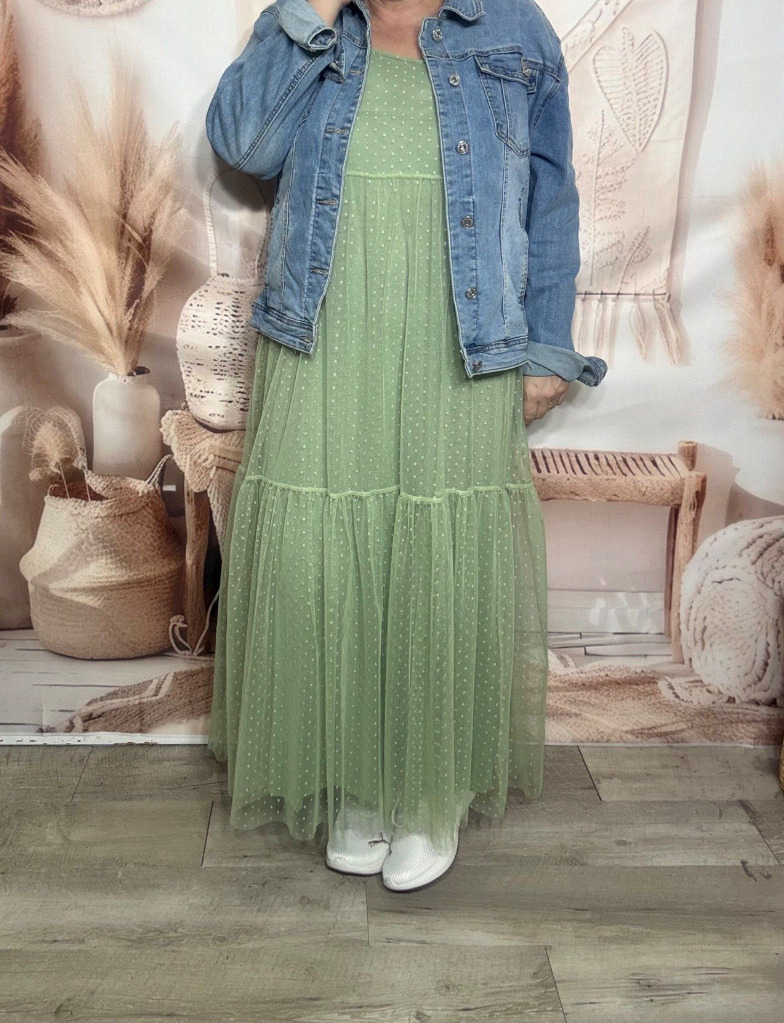 Sweat asymétrique long Kaki col rond et dentelle blanche du 38 au 50