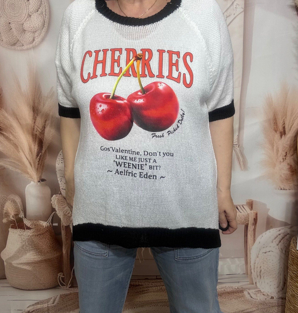 Pull fin SANS LAINE blanc & noir Les Cerises "Cherries" du 40 au 50/52
