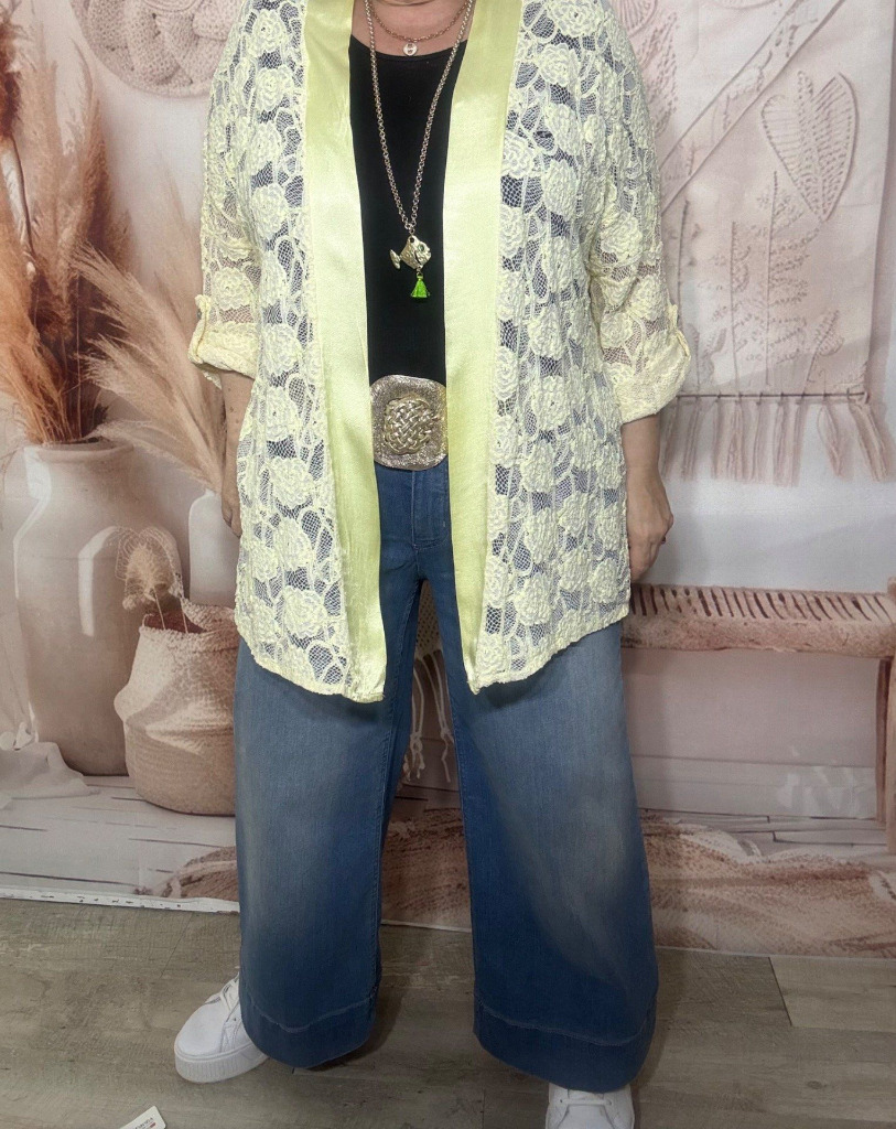 Top trapèze sans manches asymétrique jaune pastel dentelle Les Basiques du Dressing du 40 au 52