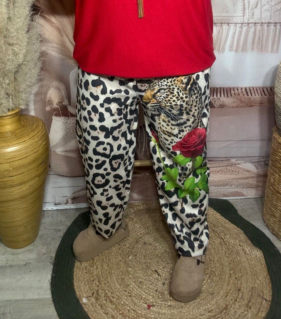 pantalon façon jogg suédine Léopard Le tigre à la rose rouge confort ++++ du 38 au 46/48