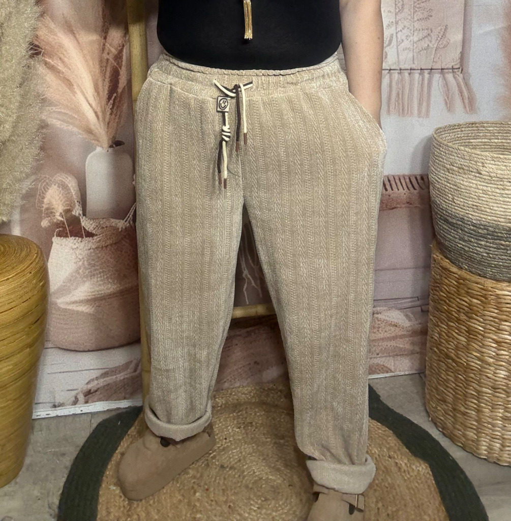 pantalon façon jogg velours rayé et motifs texturés camel confort ++++ du 40 au 50/52