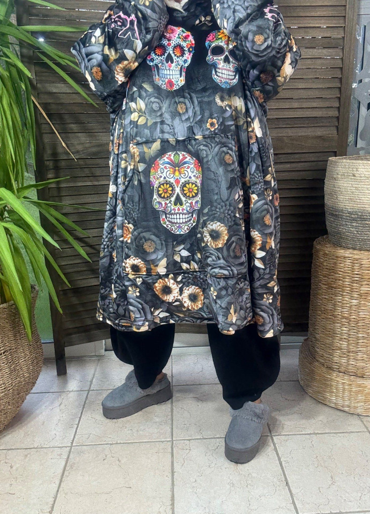 Maxi-Robe plaid velours ultra doux & doublée polaire Mexican Skulls Calavera du 42 au 58 et même +