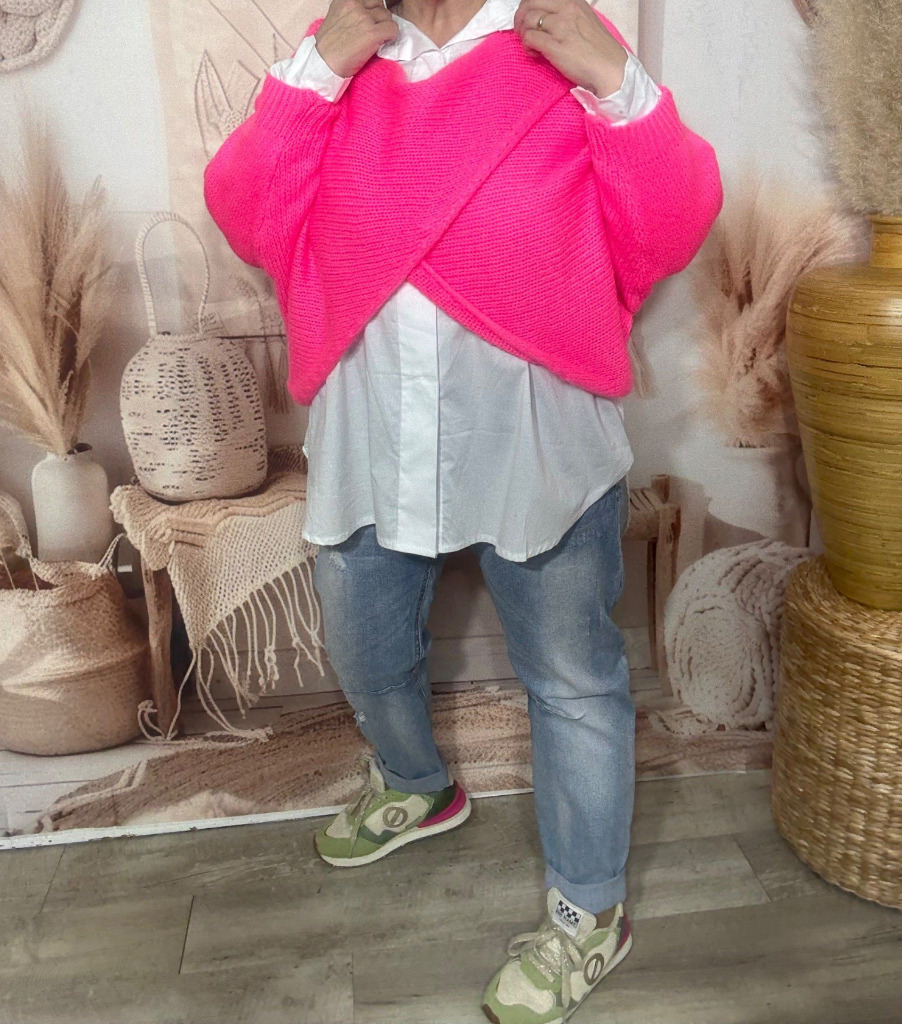Pull ample façon Papillon manches chauve-souris rose vif douceur +++ du 42 au 58/60