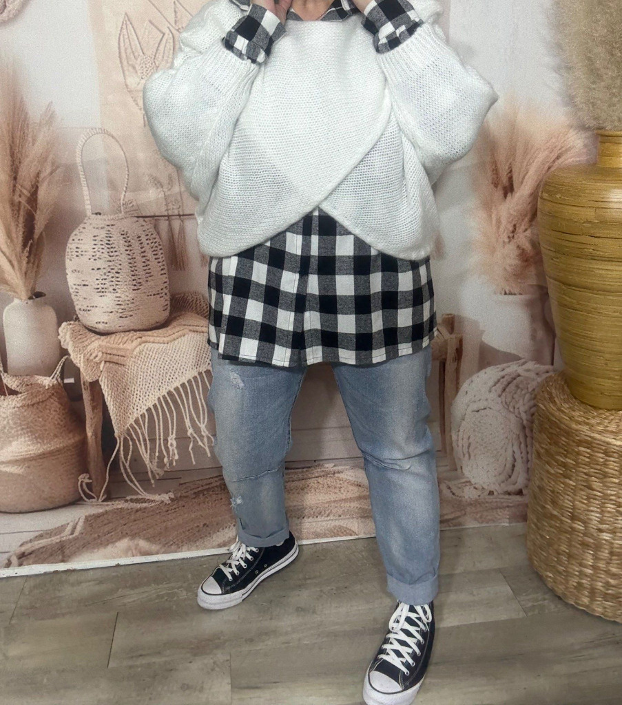 Pull court croisé blanc douceur +++ (du 40 au 52) ou en version "chauffe-épaule" jusqu'au 58/60