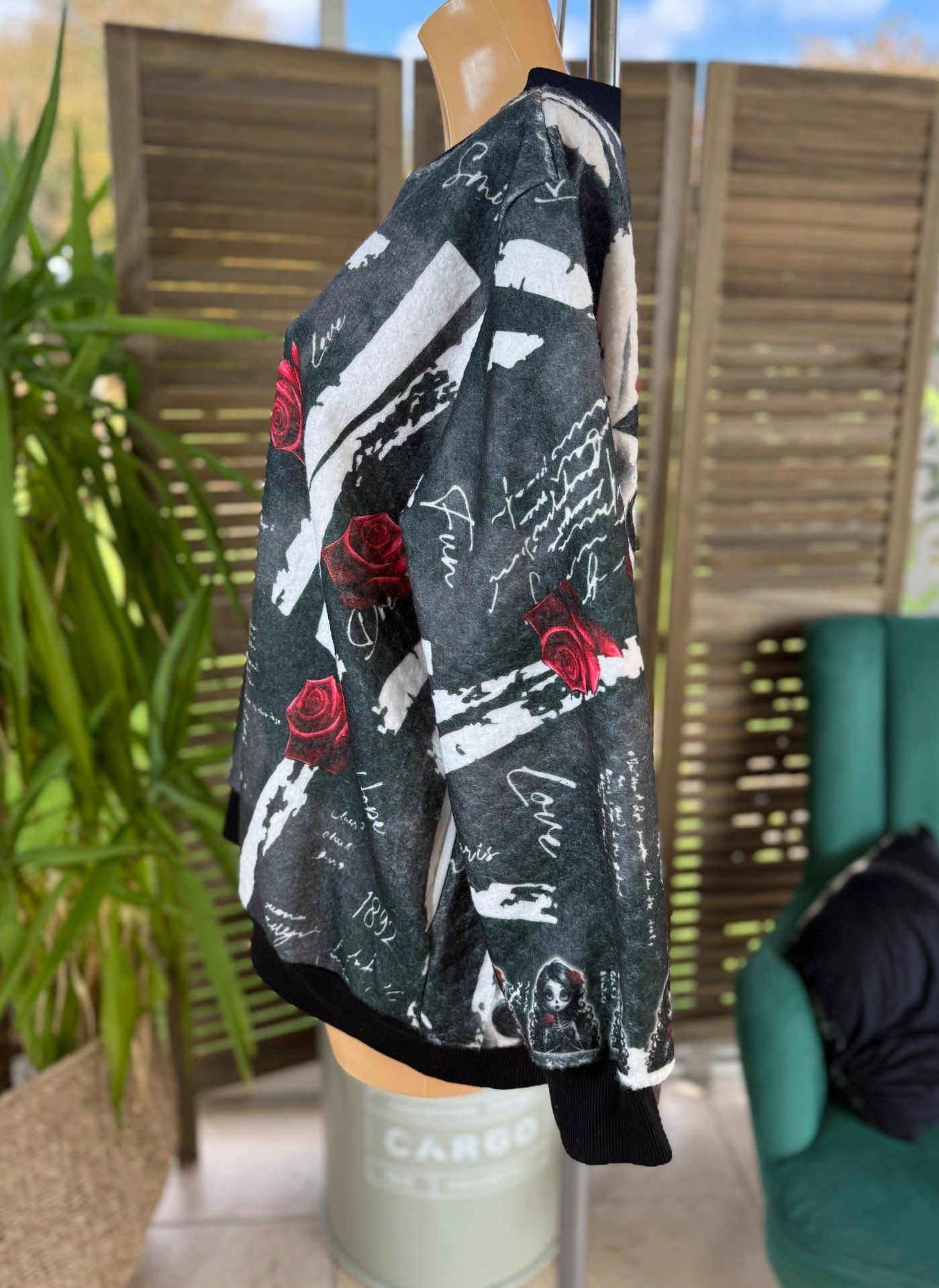 Blouson aspect laine noir grisé The Gothic Girl & Roses du 38 au 46 et même +
