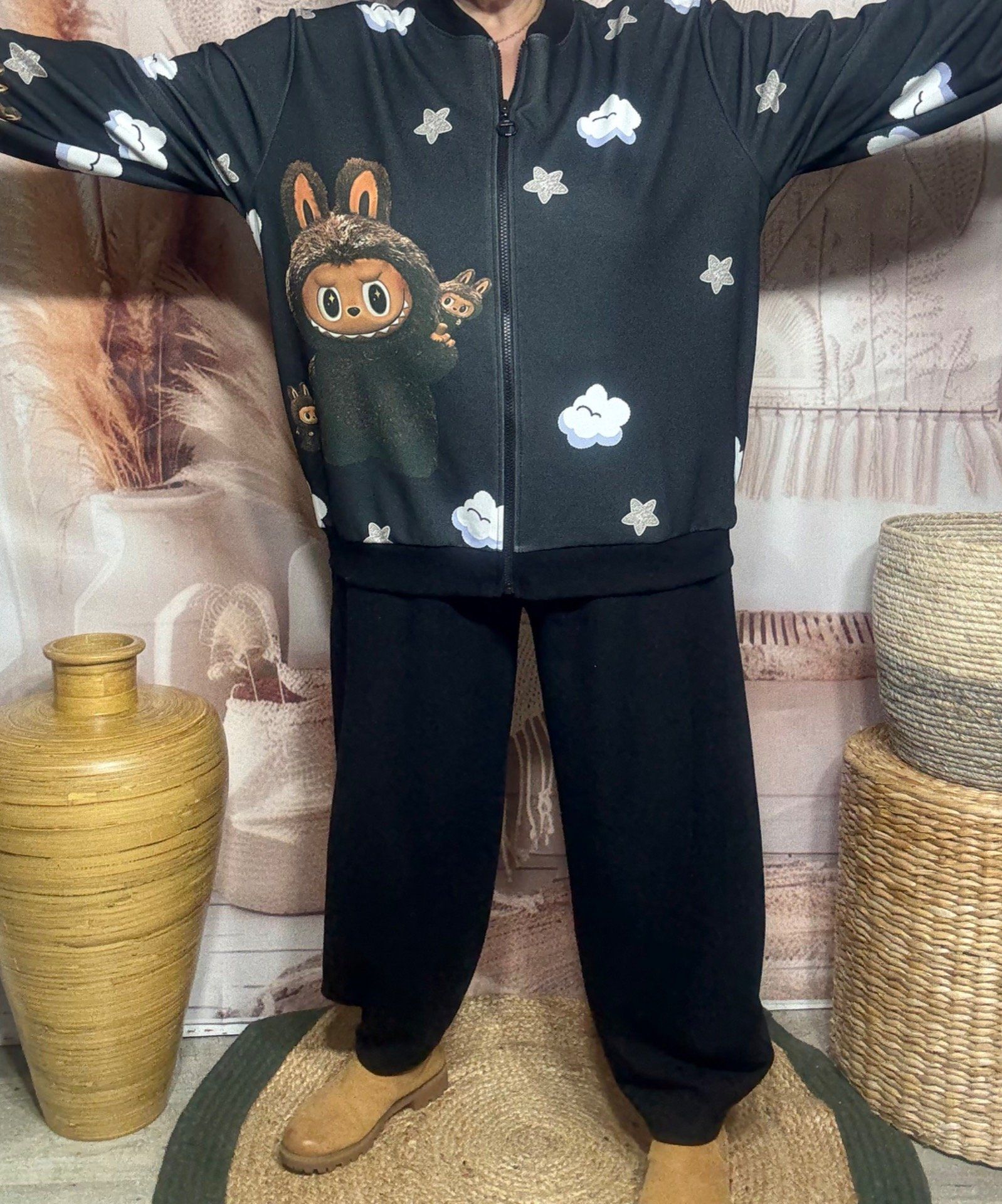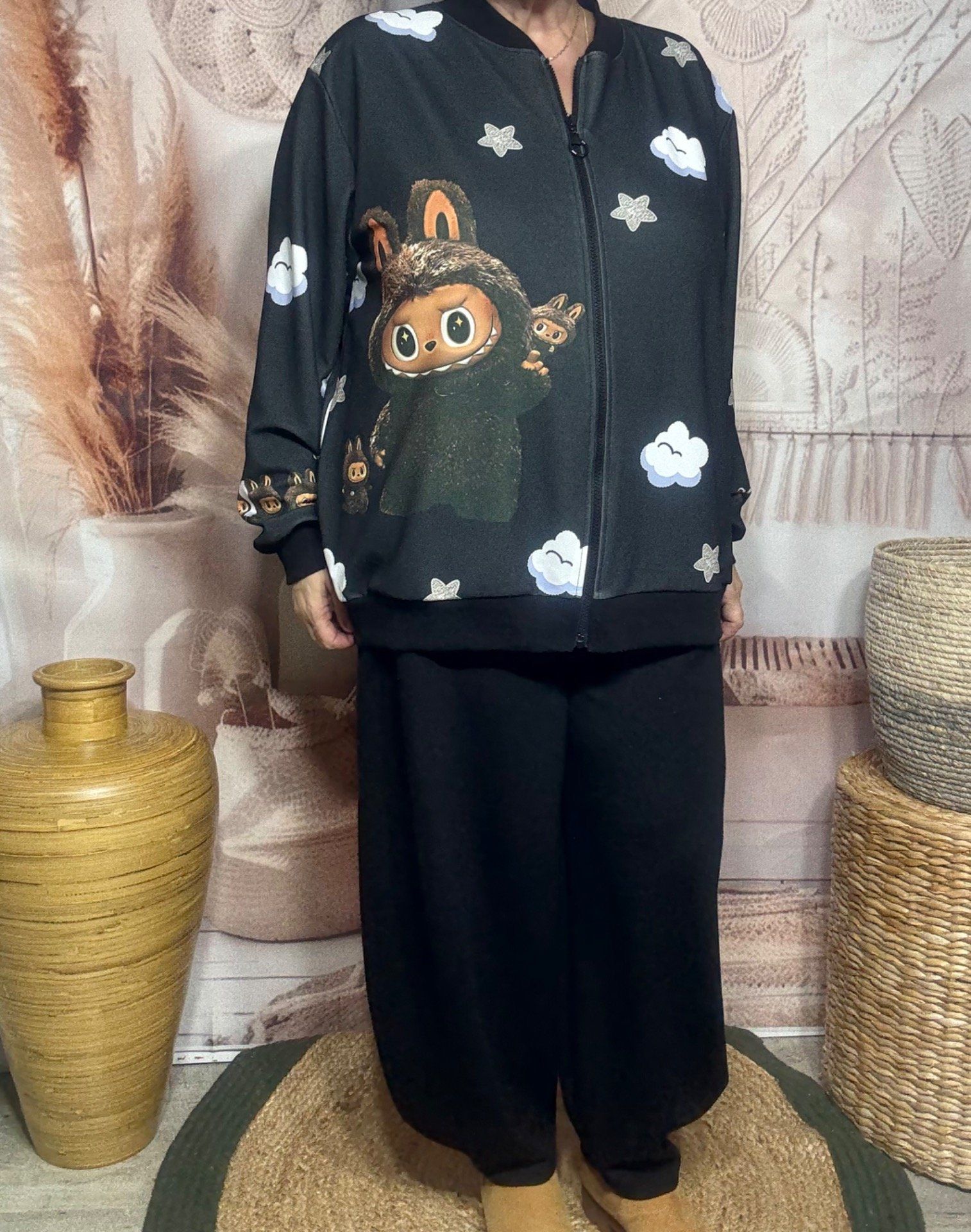 Blouson bombers ample noir Labubu Sweet Sugar du 40 au 50 et même +