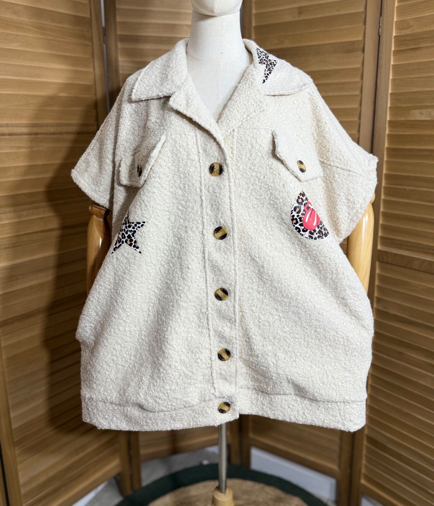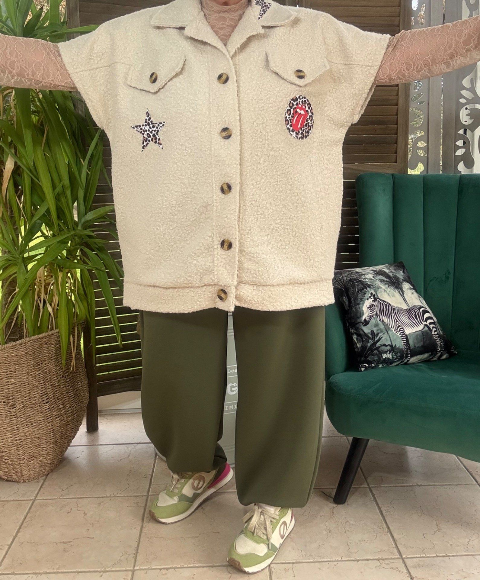 Blouson sans manches crème Patchs Léopard Rolling Stones du 40 au 52 et même +