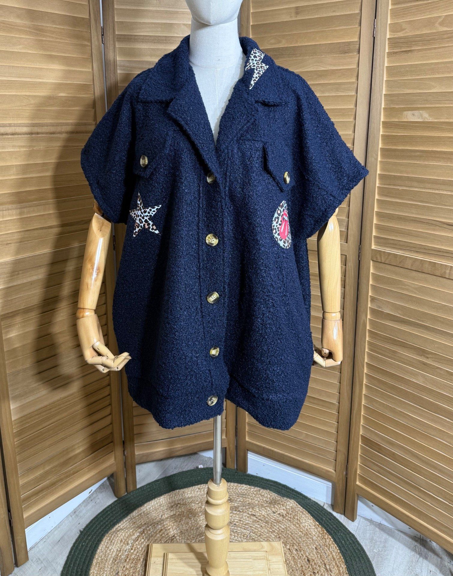 Blouson sans manches marine Patchs Léopard Rolling Stones du 40 au 52 et même +