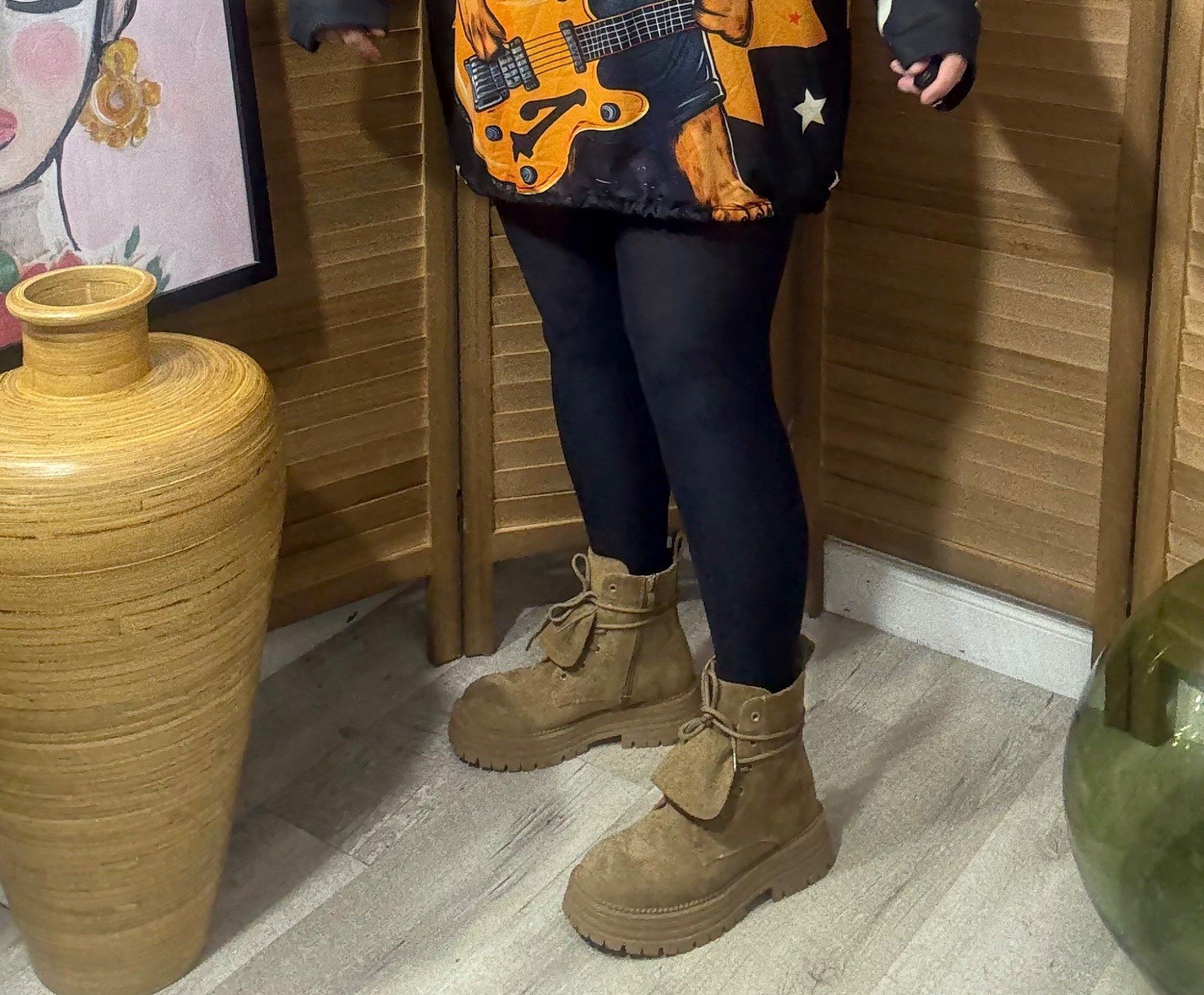 Boots à lacets suédine camel clair languette fantaisie confort ++++