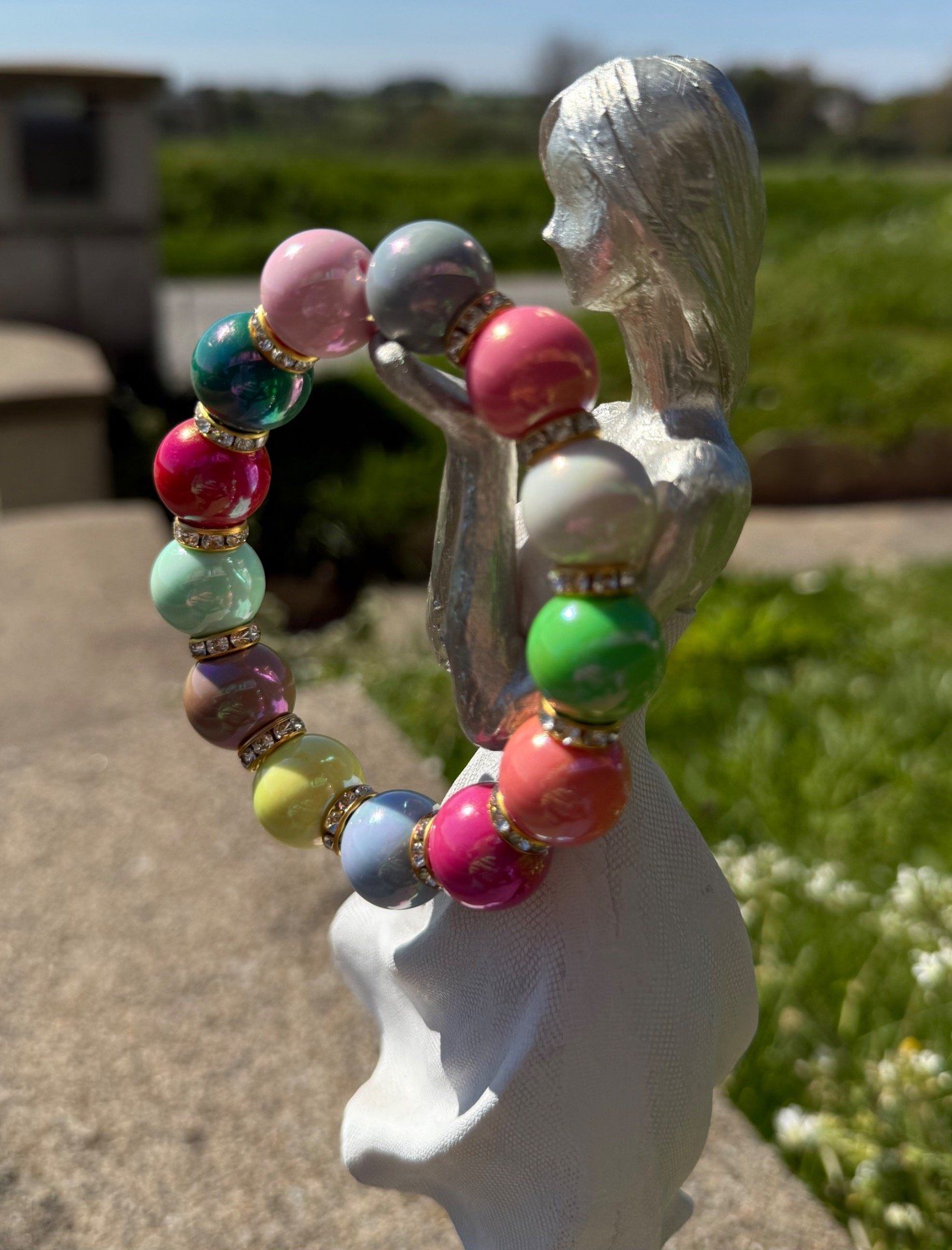 Bracelet ARTISANAL extensible N°2 perles multicolores apprêts strass dorés TOUTES TAILLES