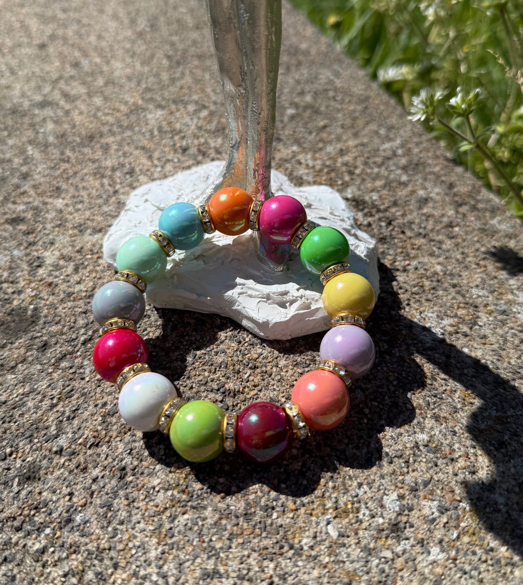 Bracelet ARTISANAL extensible N°6 perles multicolores apprêts strass dorés TOUTES TAILLES