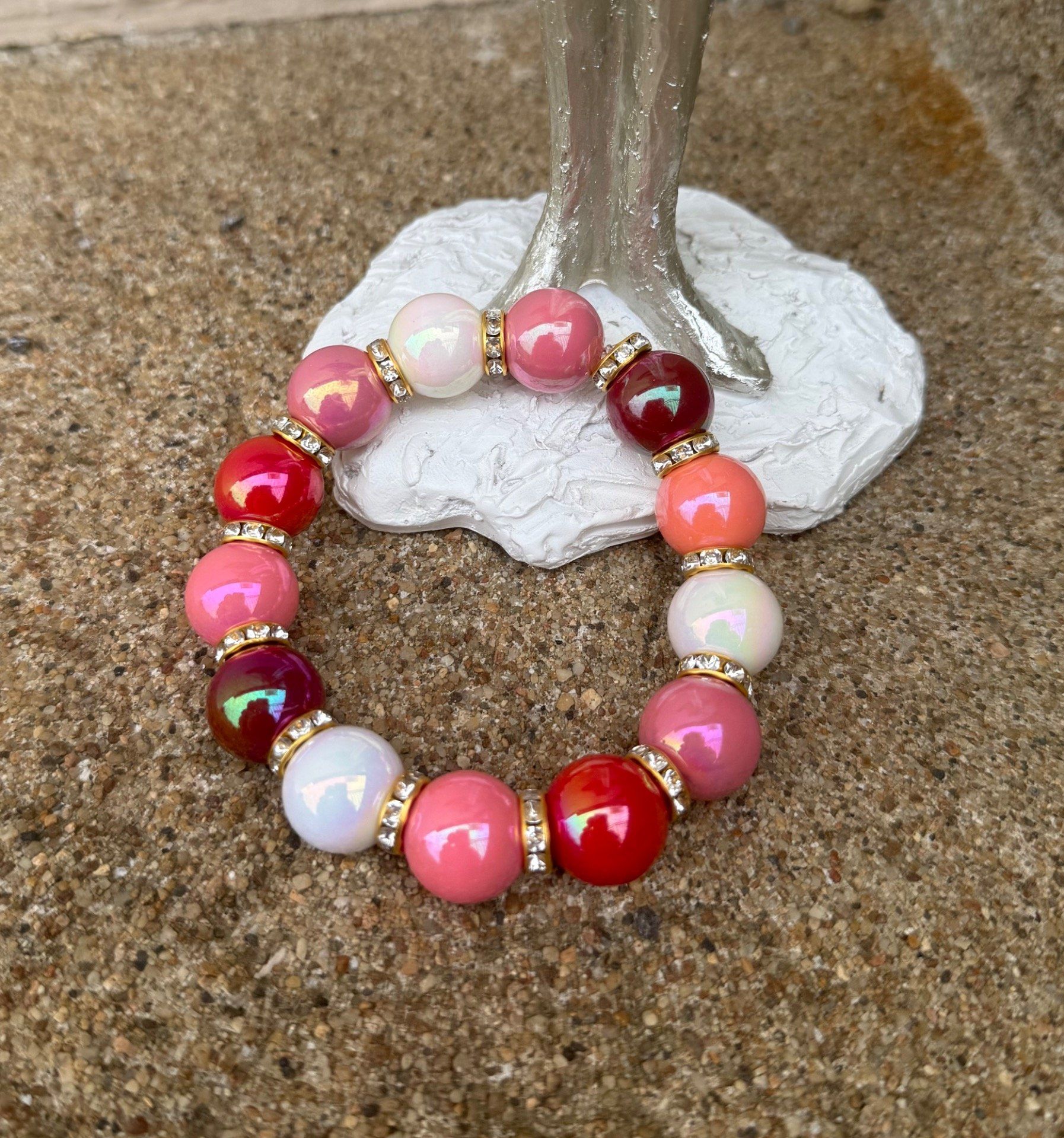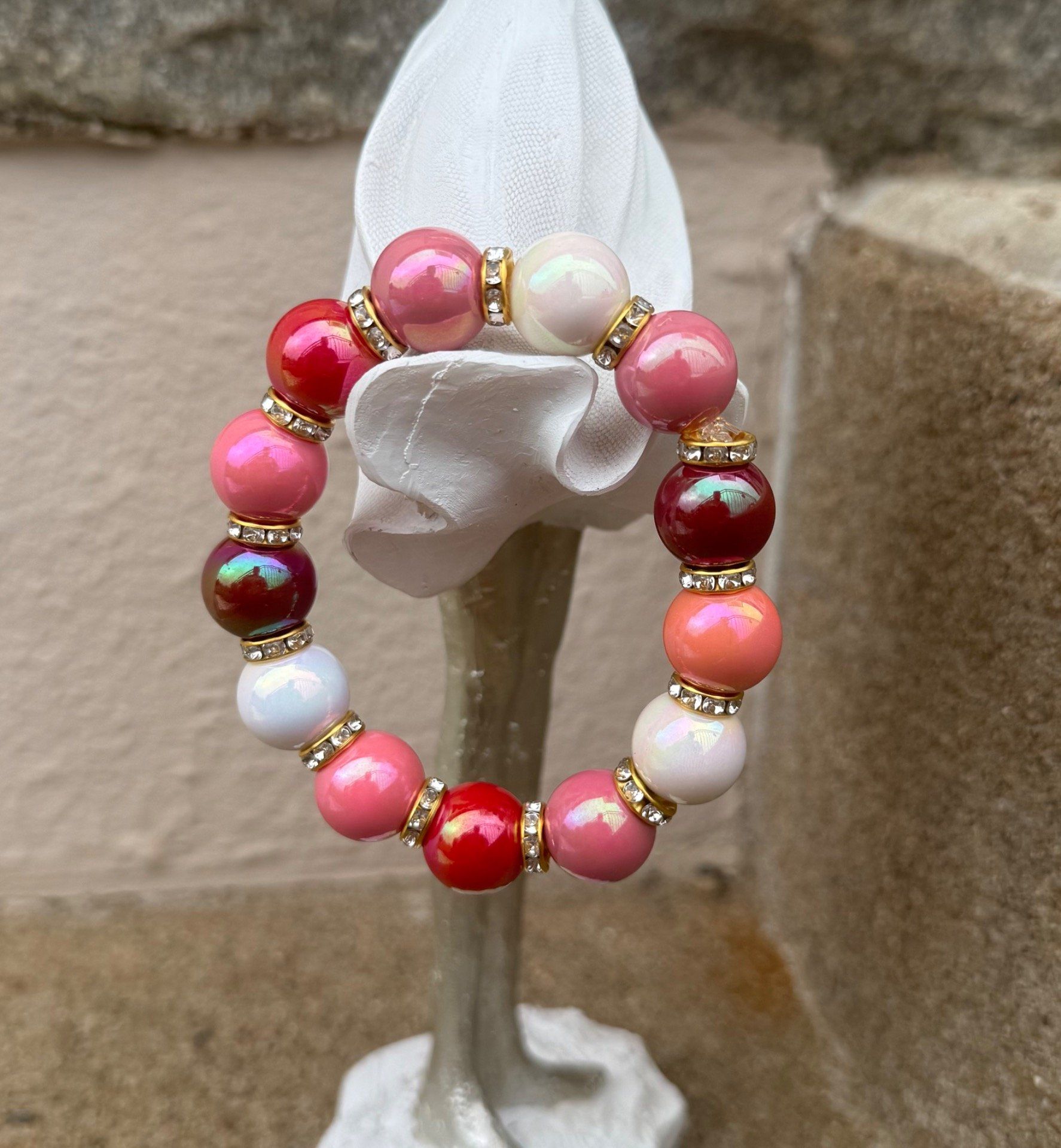 Bracelet ARTISANAL extensible perles effet céramique apprêts strass dorés TOUTES TAILLES