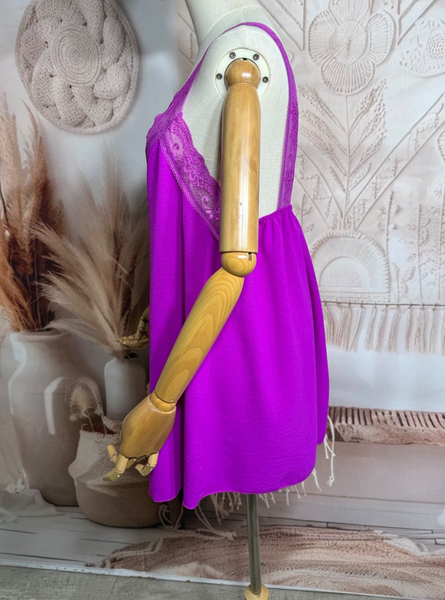 Caraco trapèze Aubergine dentelle extensible larges bretelles confort +++