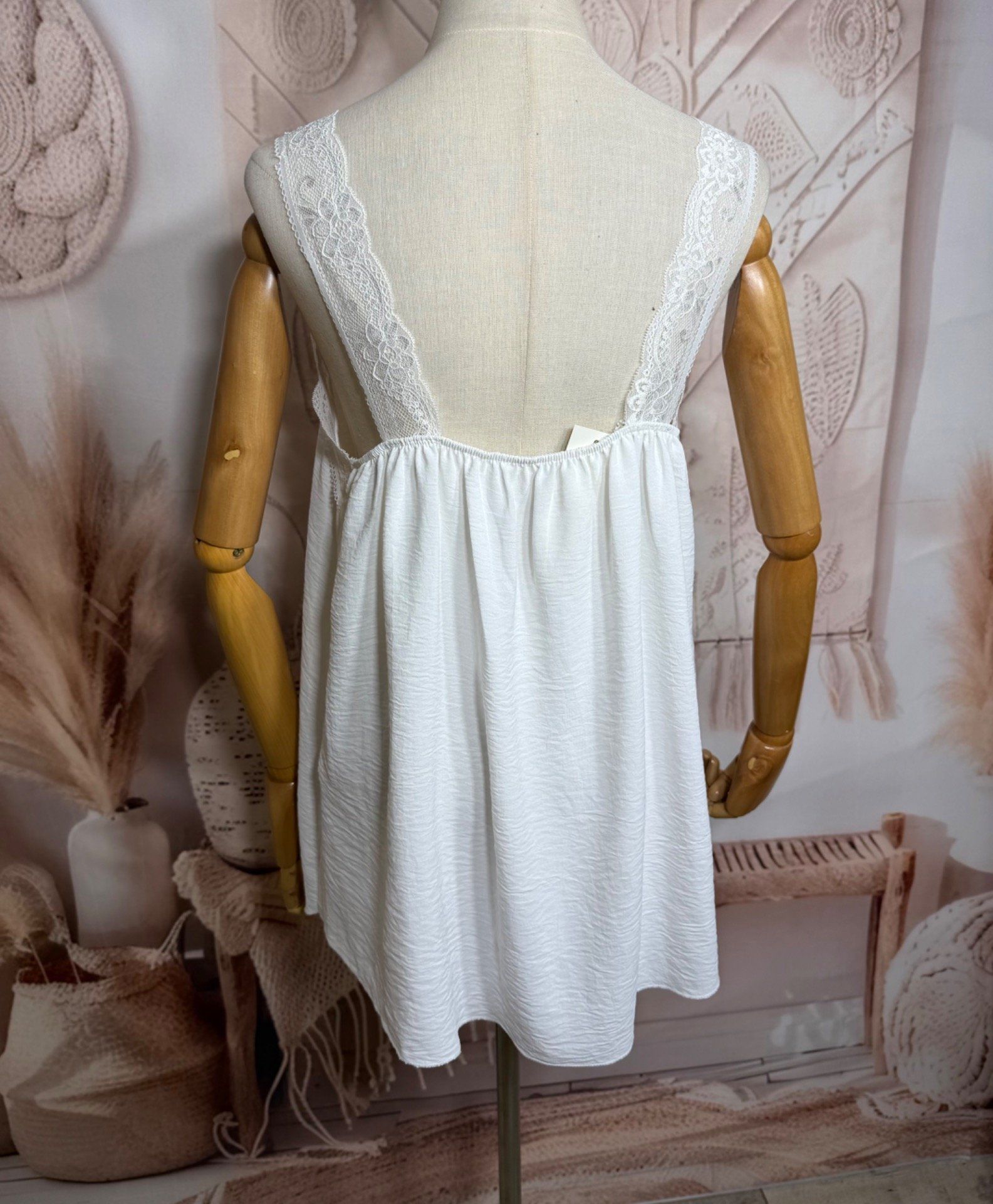 Caraco trapèze blanc dentelle extensible larges bretelles confort +++