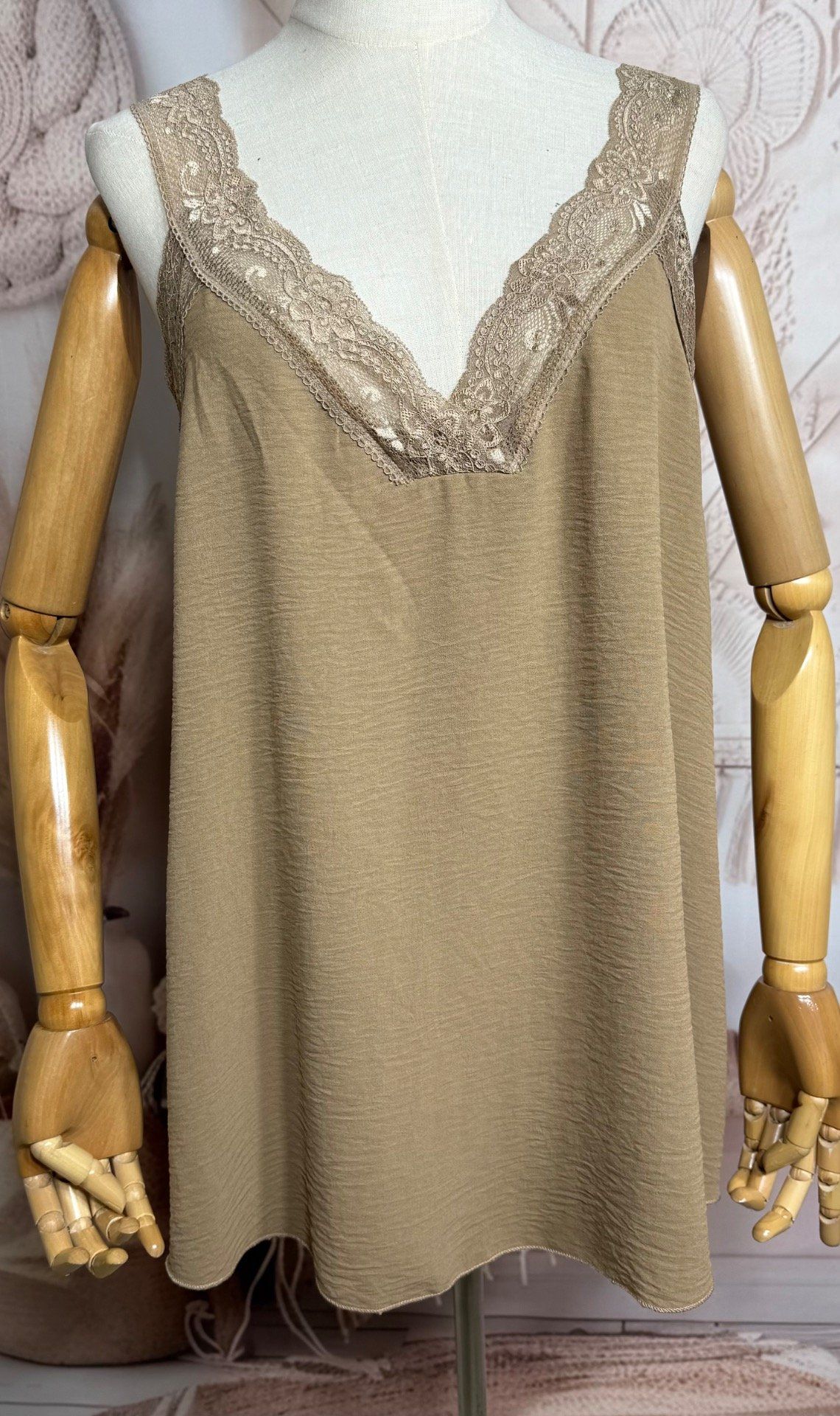 Caraco trapèze camel dentelle extensible larges bretelles confort +++