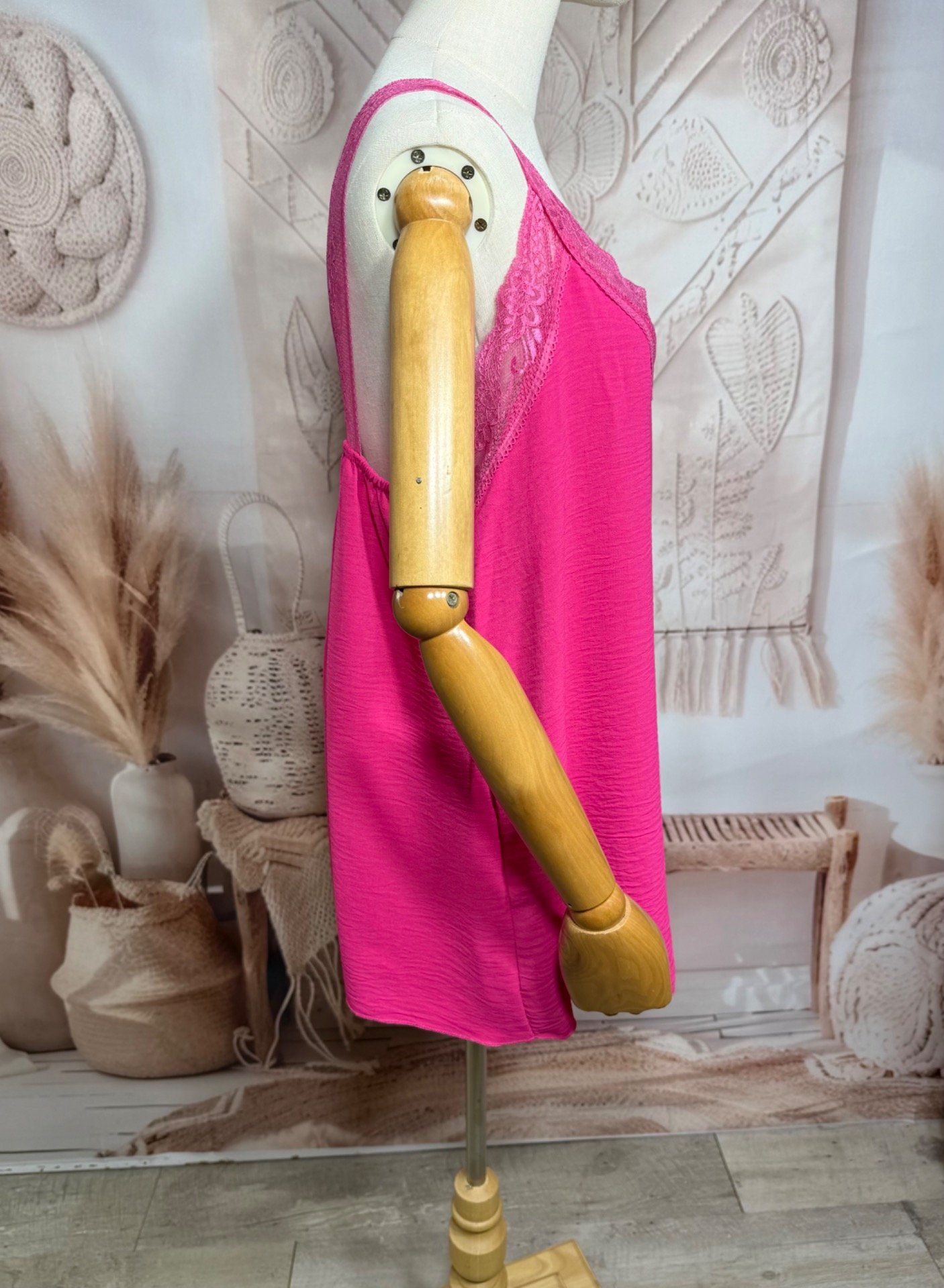 Caraco trapèze fuschia dentelle extensible larges bretelles confort +++