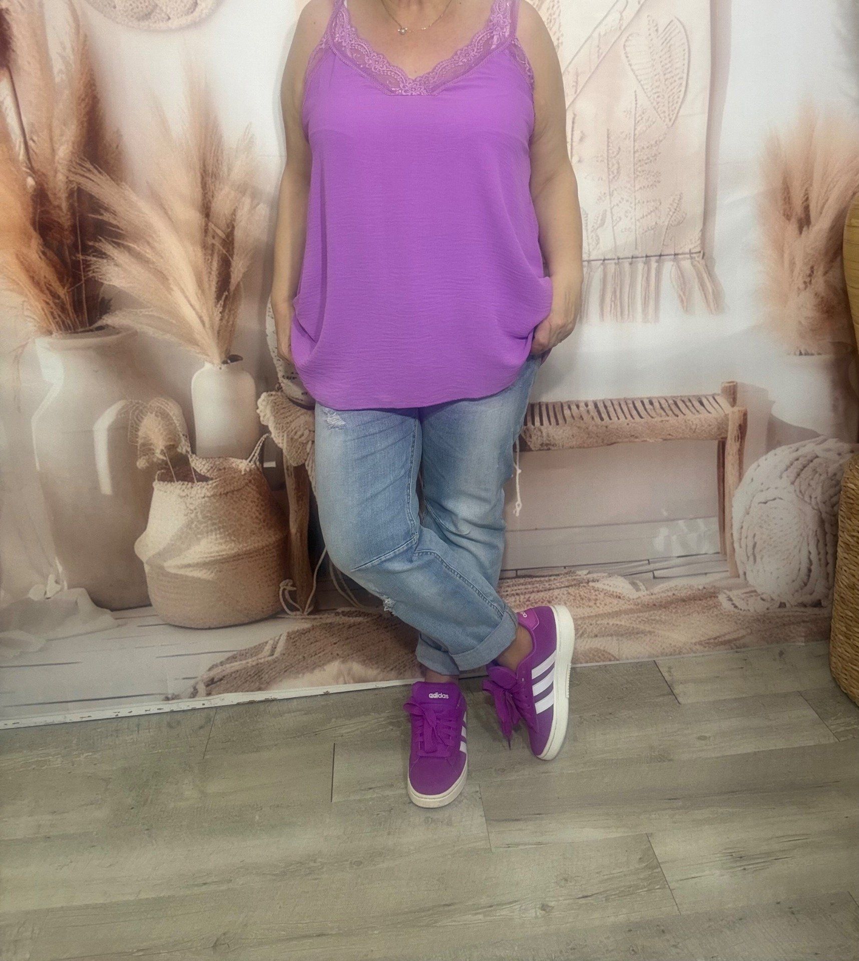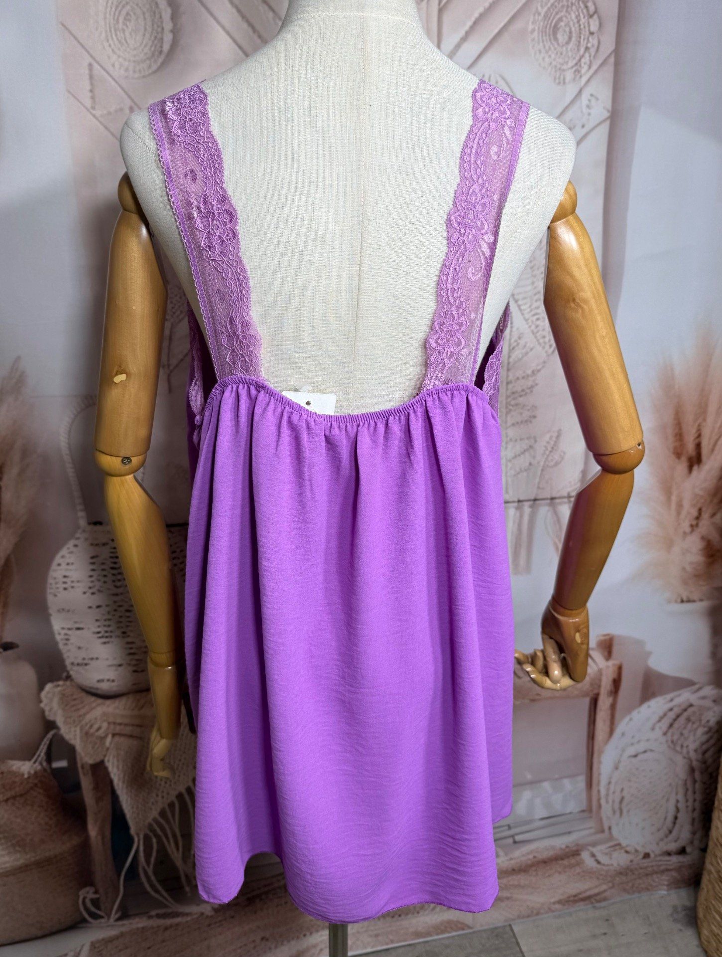 Caraco trapèze Lilas Violine dentelle extensible larges bretelles confort +++