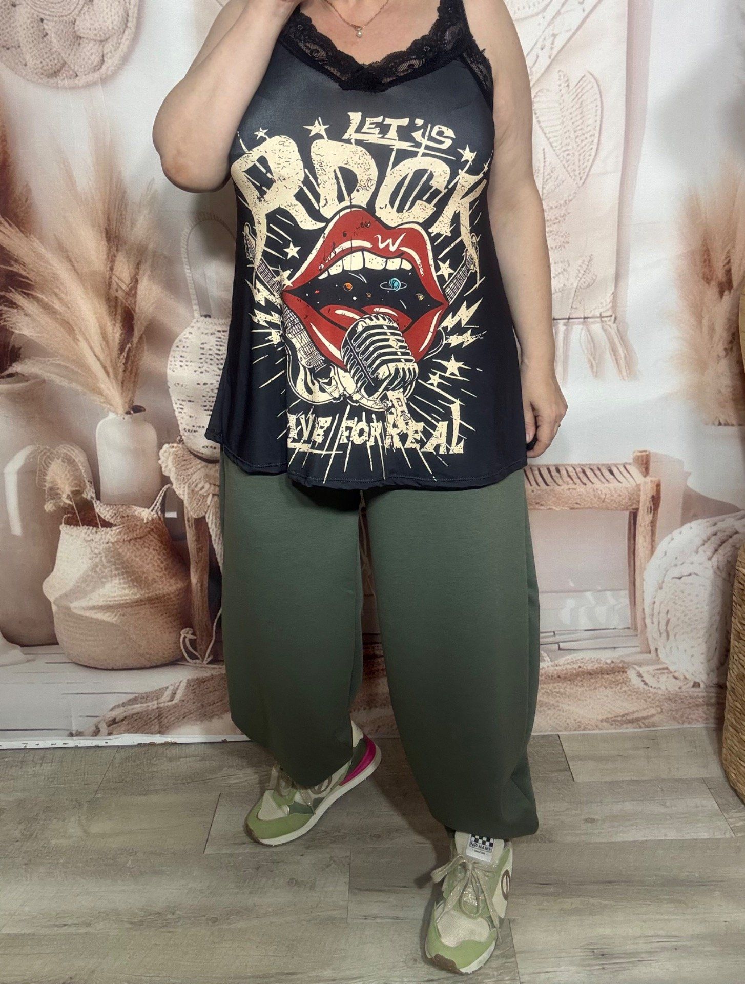 Caraco trapèze Lycra Let's Rock For real bretelles dentelle noire confort ++ du 36 au 46