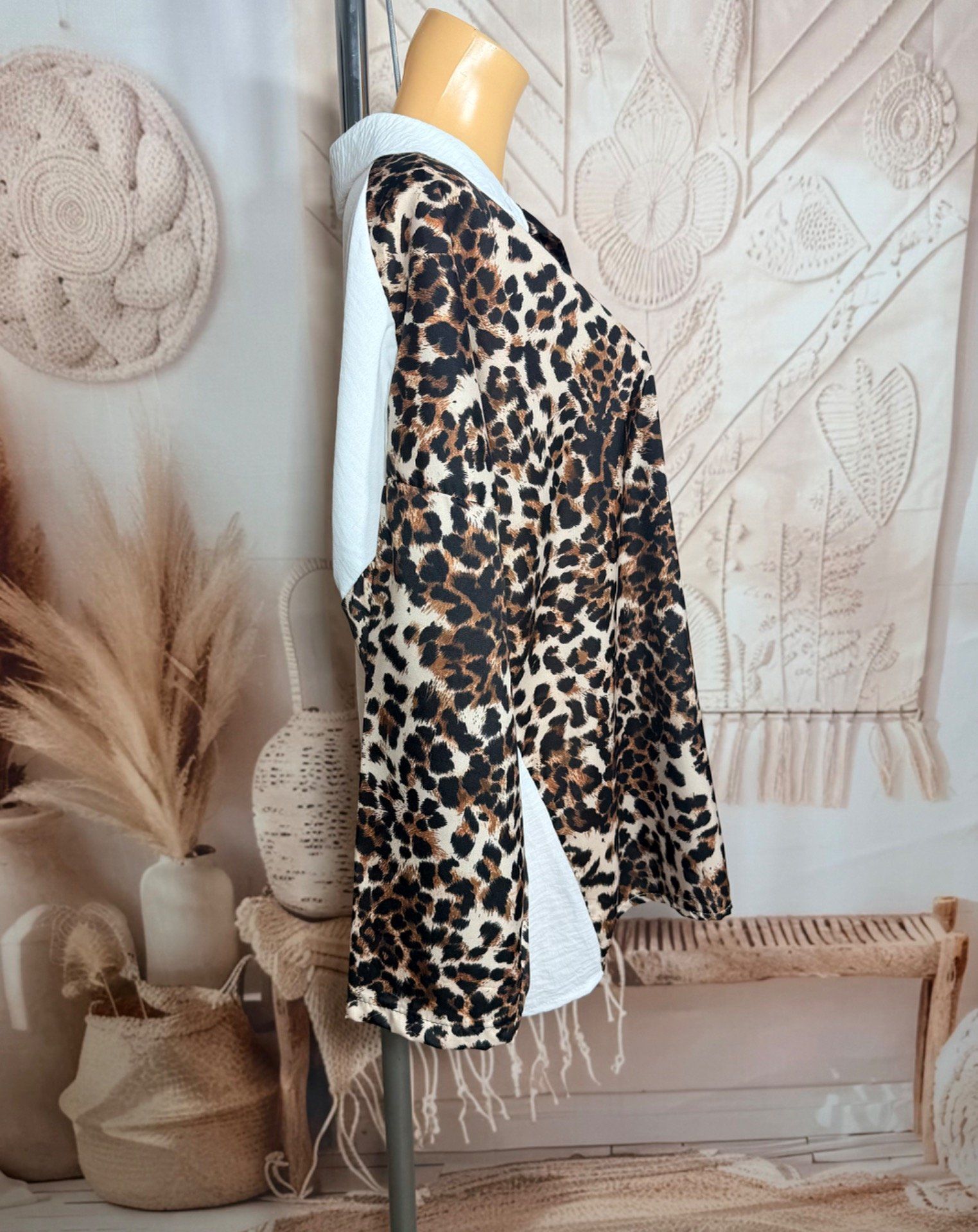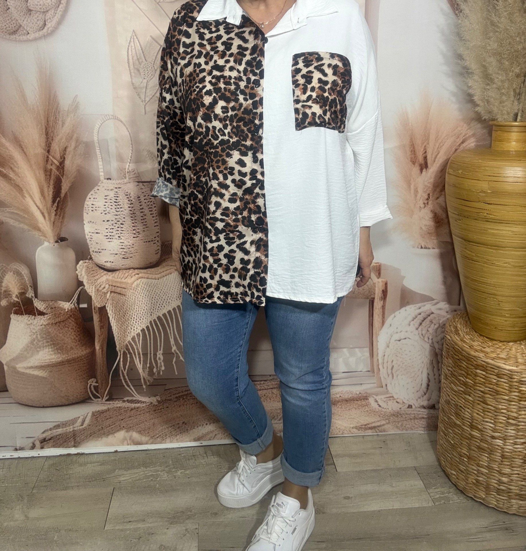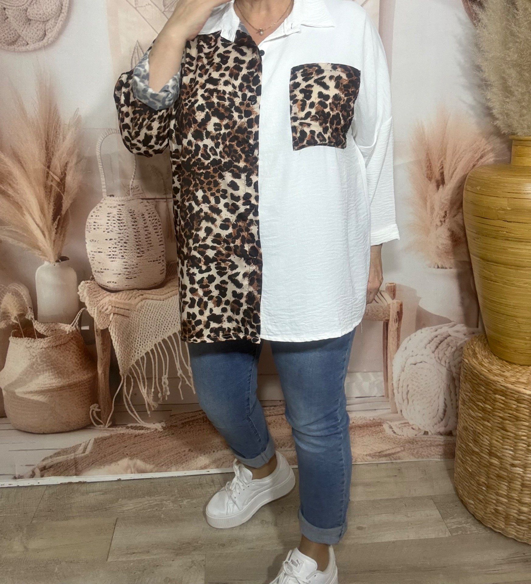 Chemise ample bicolore blanc Léopard camel caramel du 40 au 50/52