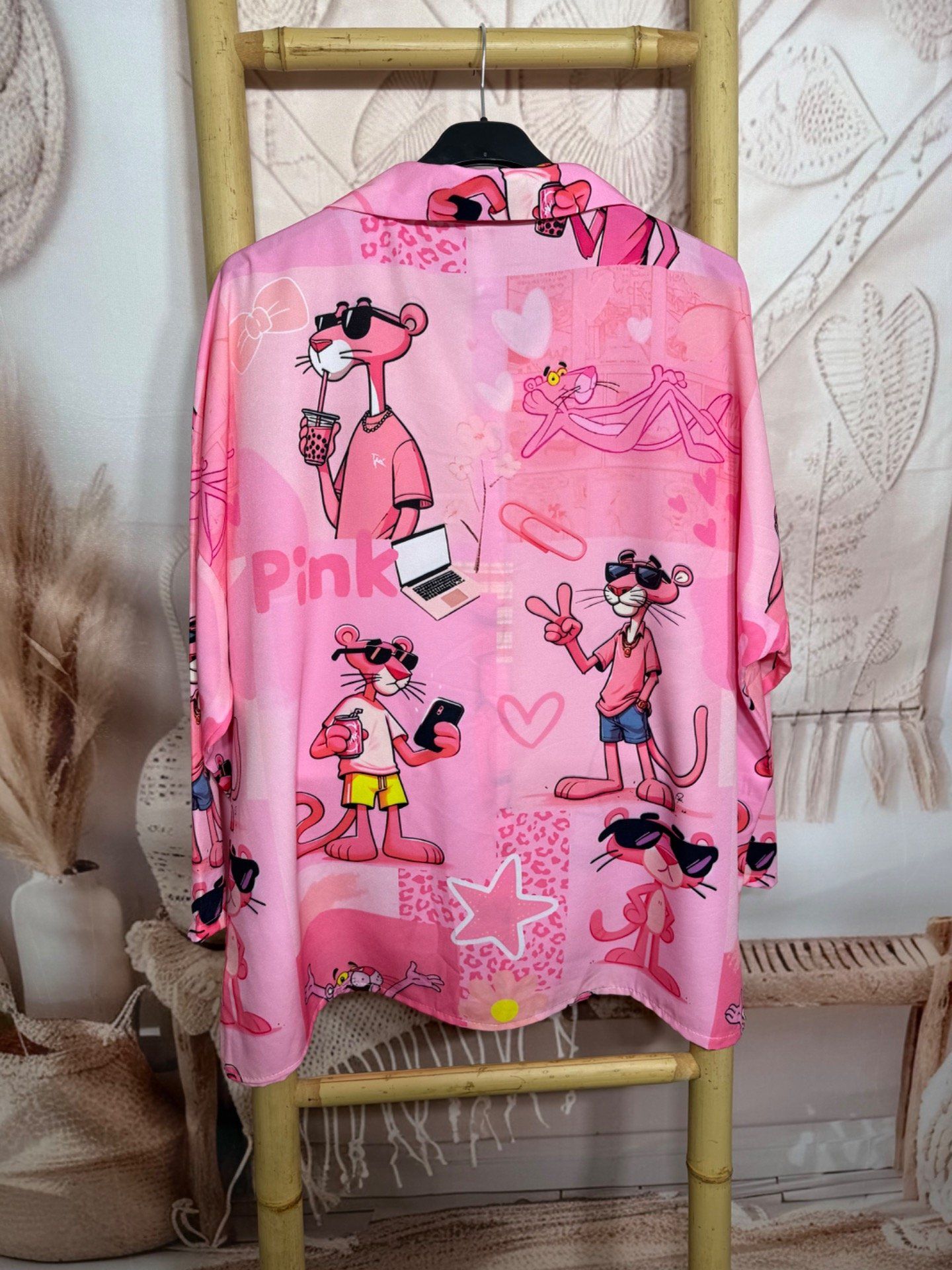 Chemise ample rose bonbon La Panthère Rose All Over du 40 au 50 et même +