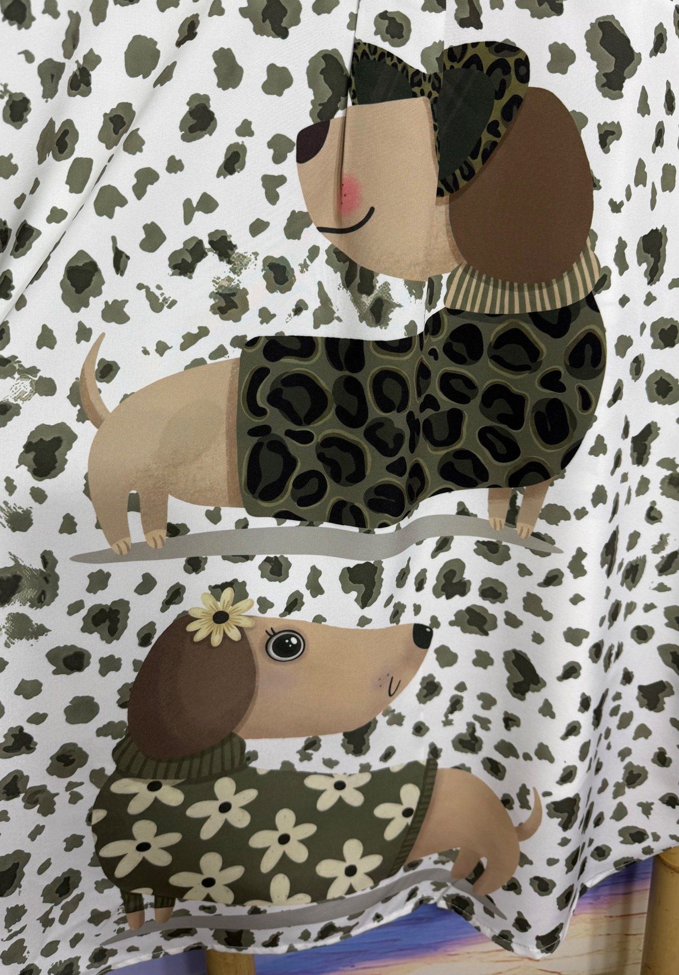 superbe imprimé Chiens Teckel sur fond blanc et léopard kaki :-)