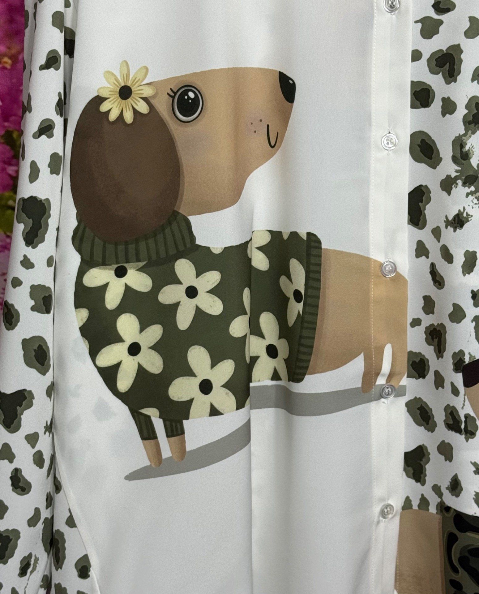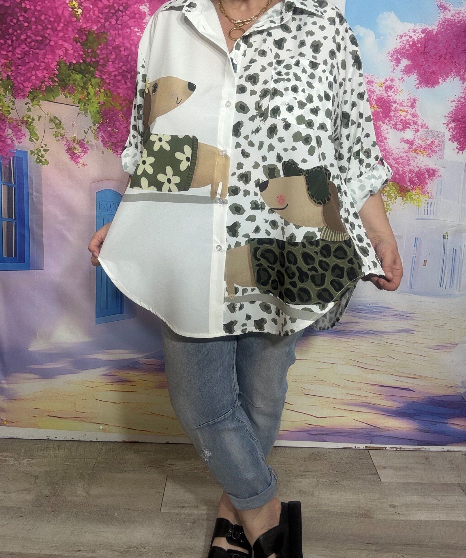Chemise blanche & Léopard Kaki manches réglables Les Chiens Teckel