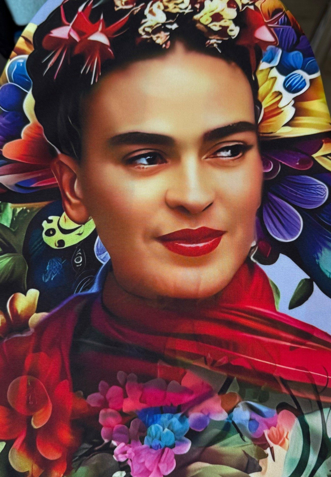 superbe imprimé Frida Kahlo sur fond bleu et crème :-)