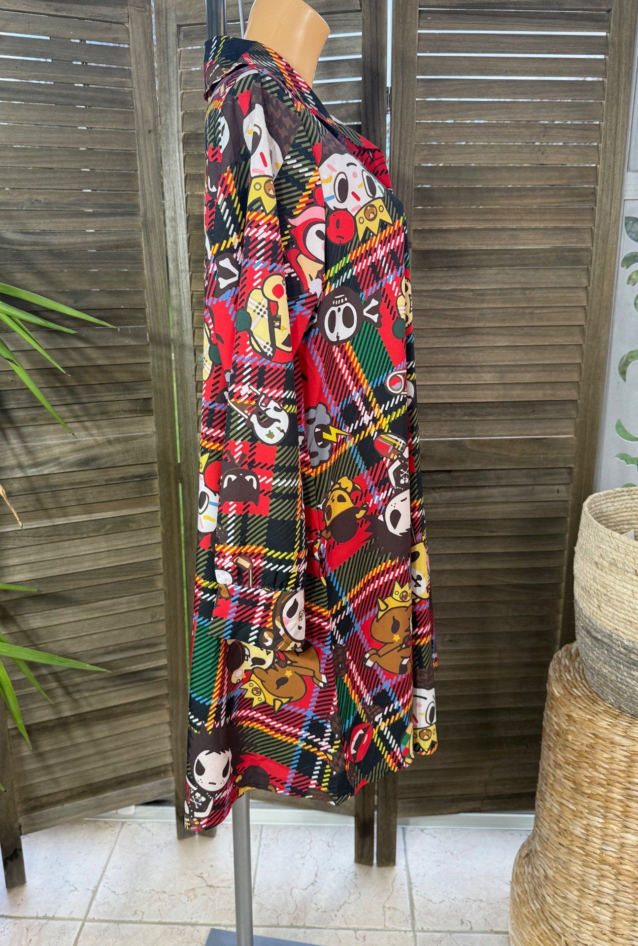 Chemise longue trapèze Tartan carreaux rouges Old School