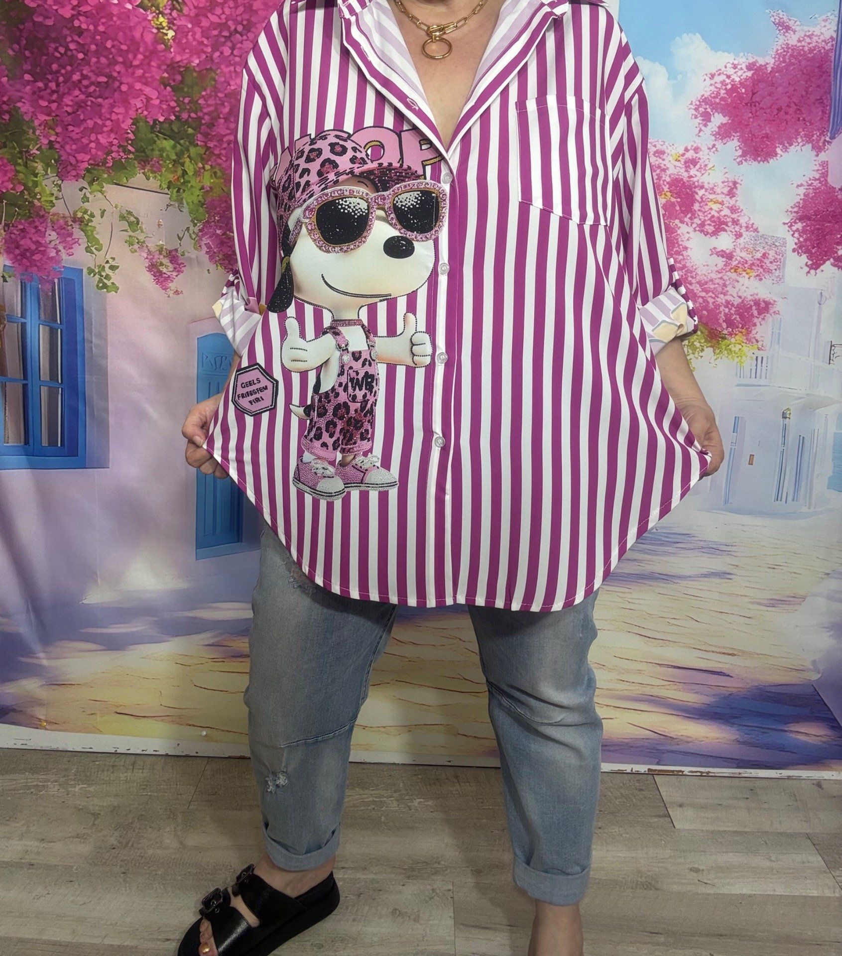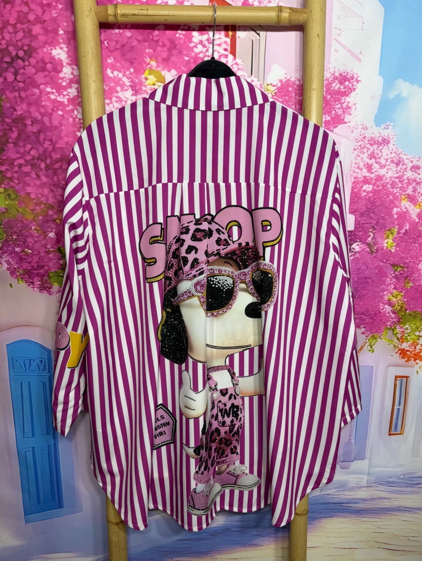 Chemise rayée Aubergine et blanche manches réglables SnoopyLéopard violet