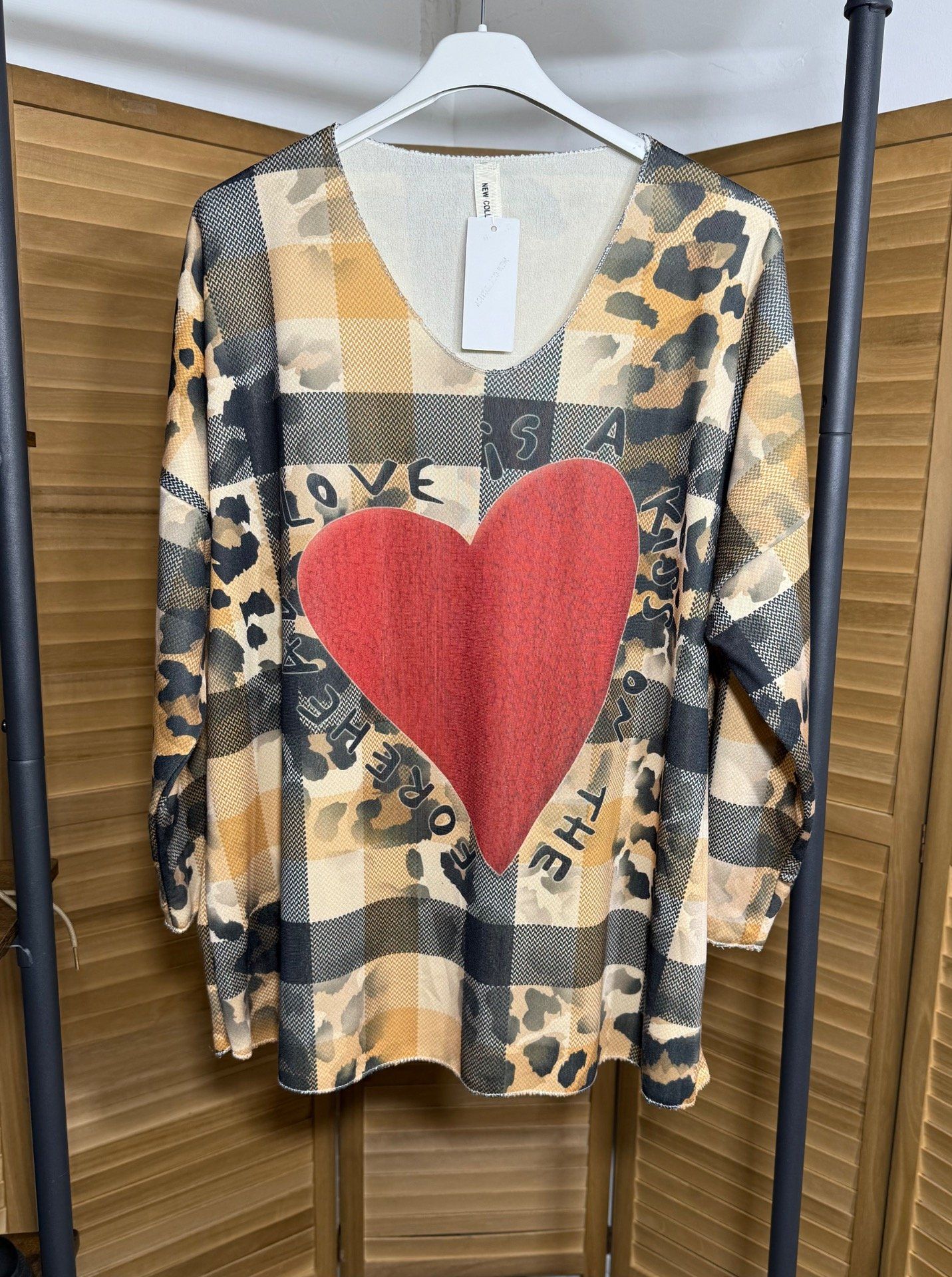 adorable imprimé carreaux Tartan + coeur rouge en grand devant et carreaux Tartan derrière