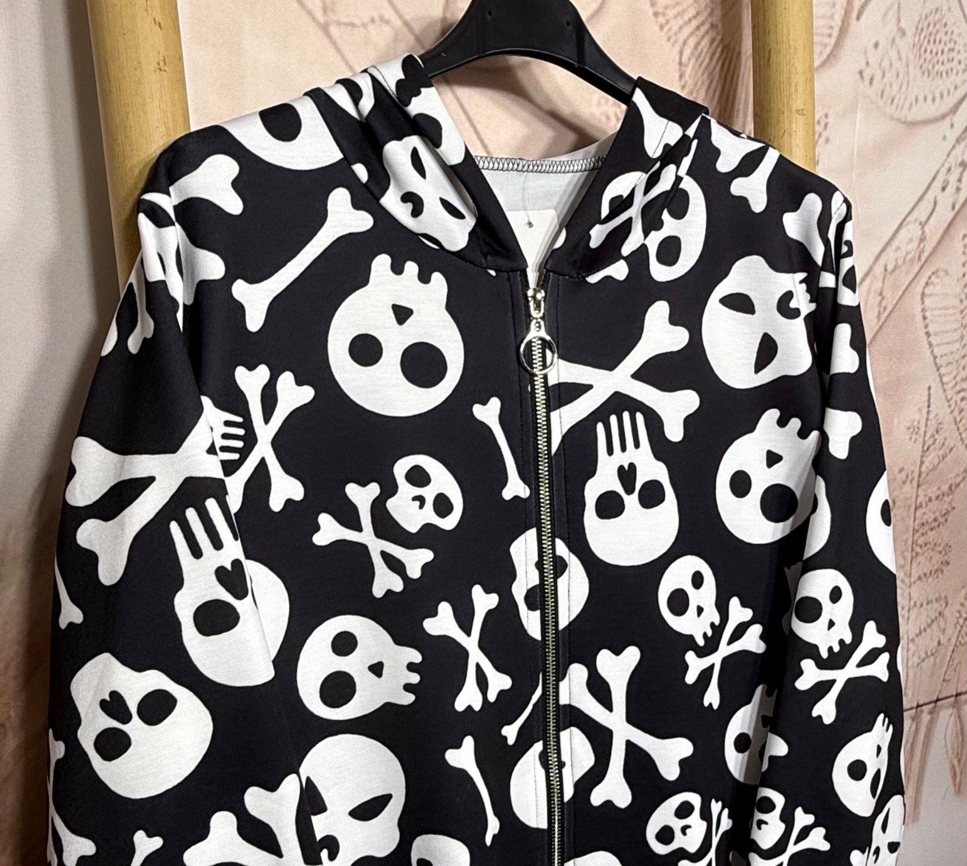 Gilet à capuche oversize noir Skulls Calaveras blanches Allover du 42 au 56 et même +