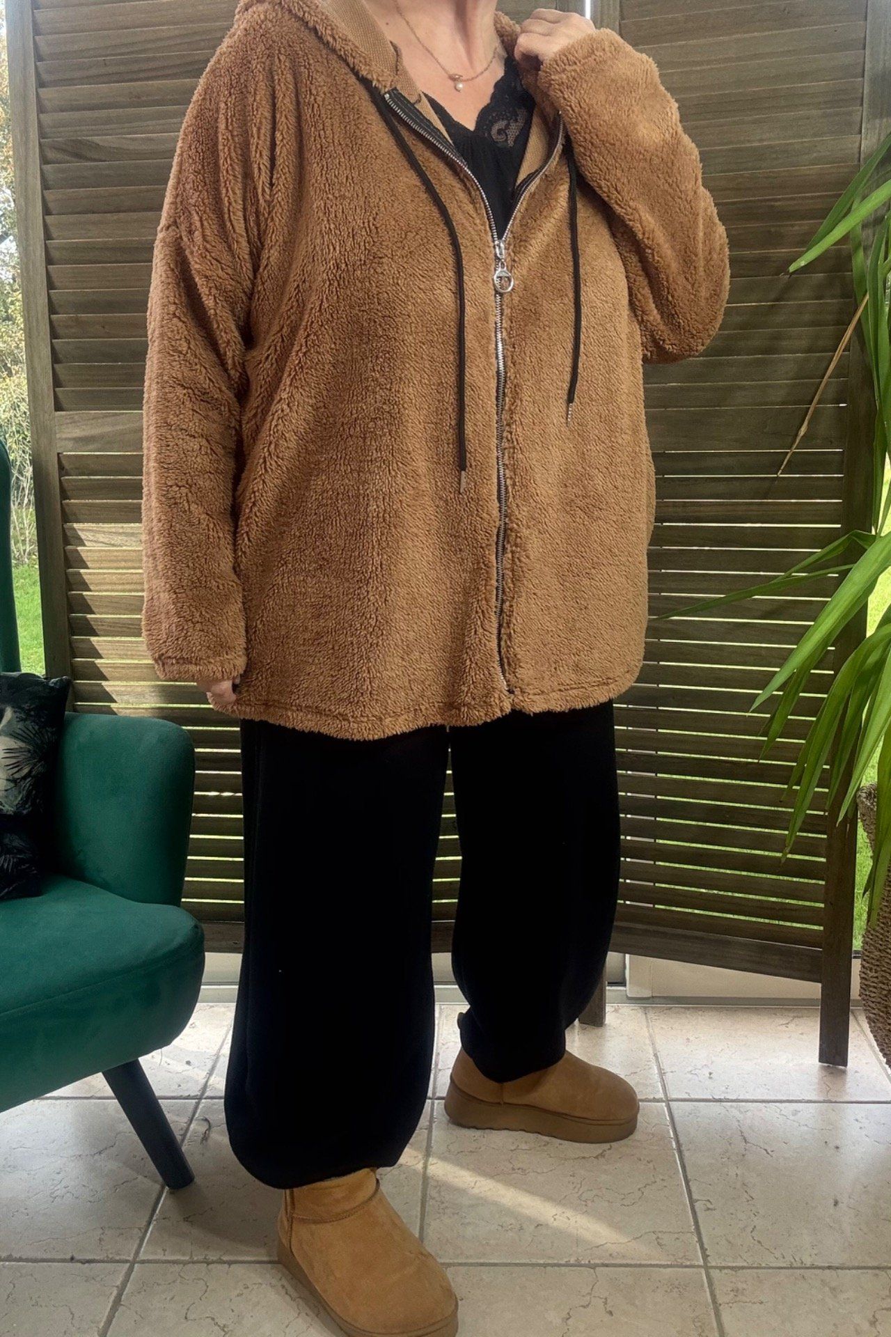 Gilet à capuche peluche Pilou-Pilou Camel douceur +++ du 40 au 54/56 et même +
