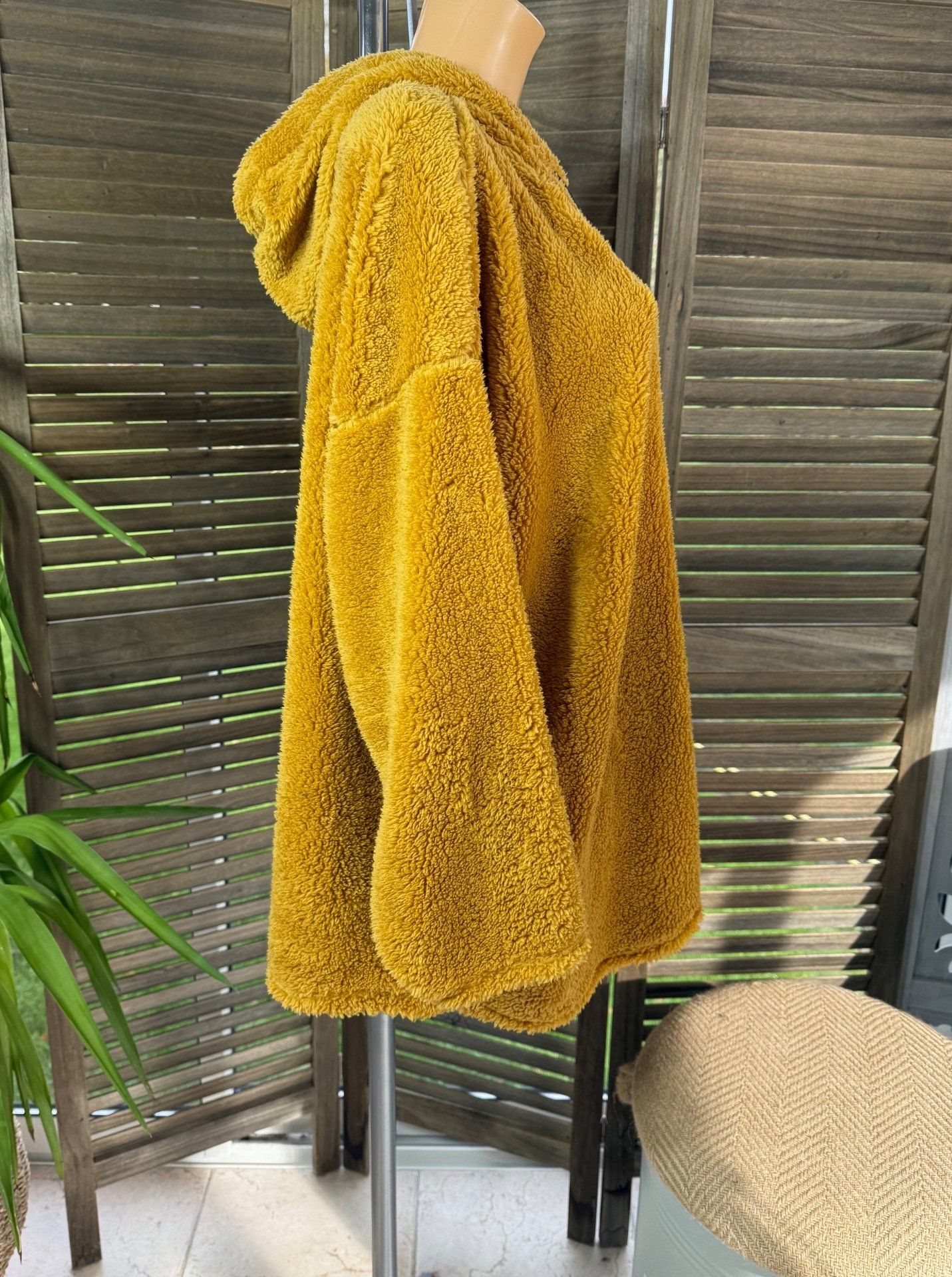 Gilet à capuche peluche Pilou-Pilou moutarde douceur +++ du 40 au 54/56 et même +