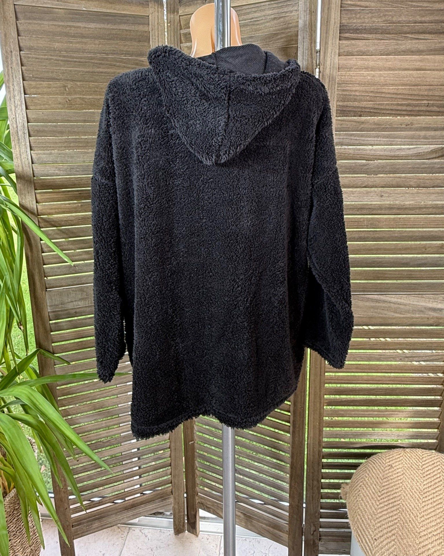 Gilet à capuche peluche Pilou-Pilou noir douceur +++