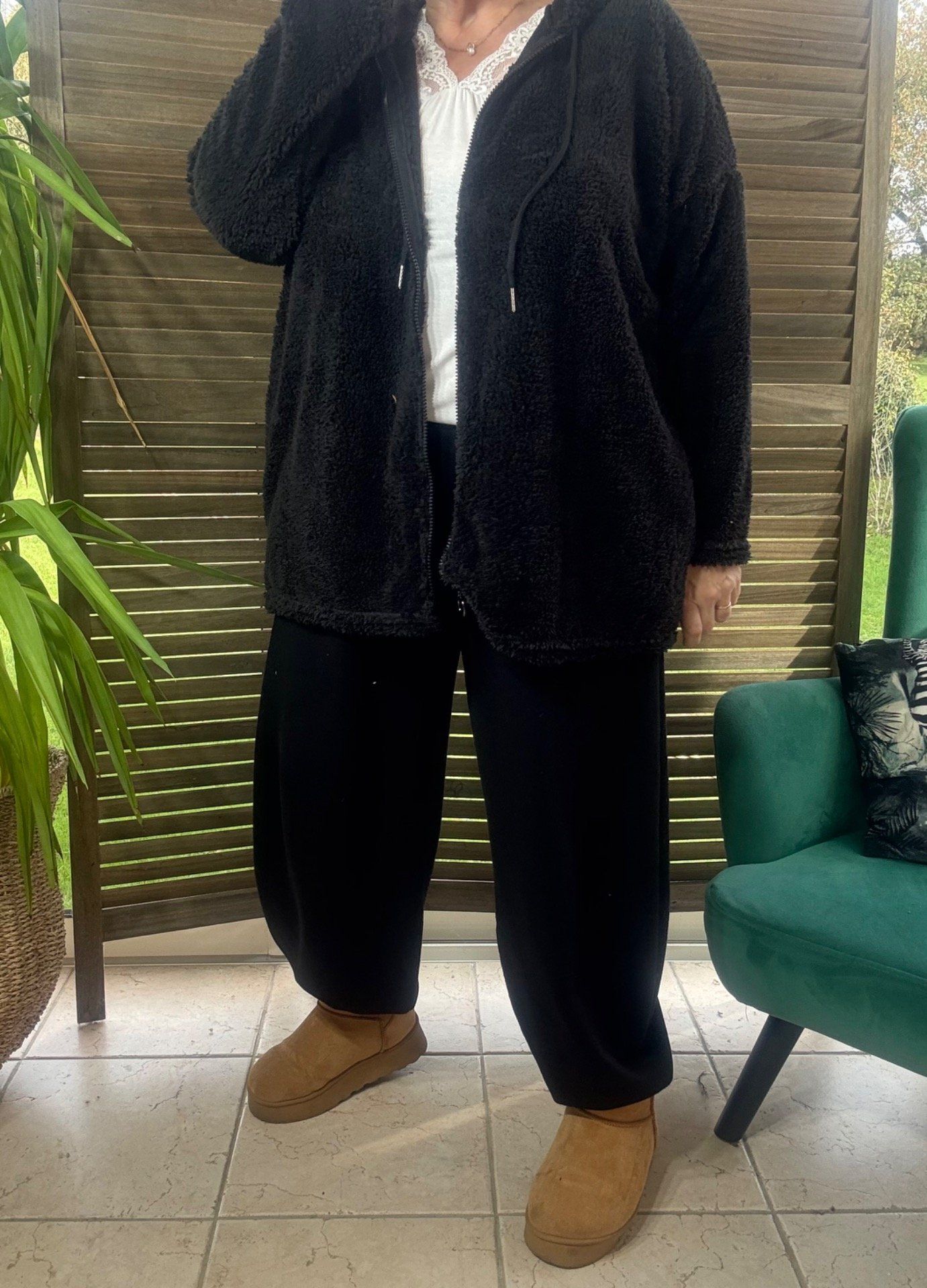 Gilet à capuche peluche Pilou-Pilou noir douceur +++ du 40 au 54/56 et même +
