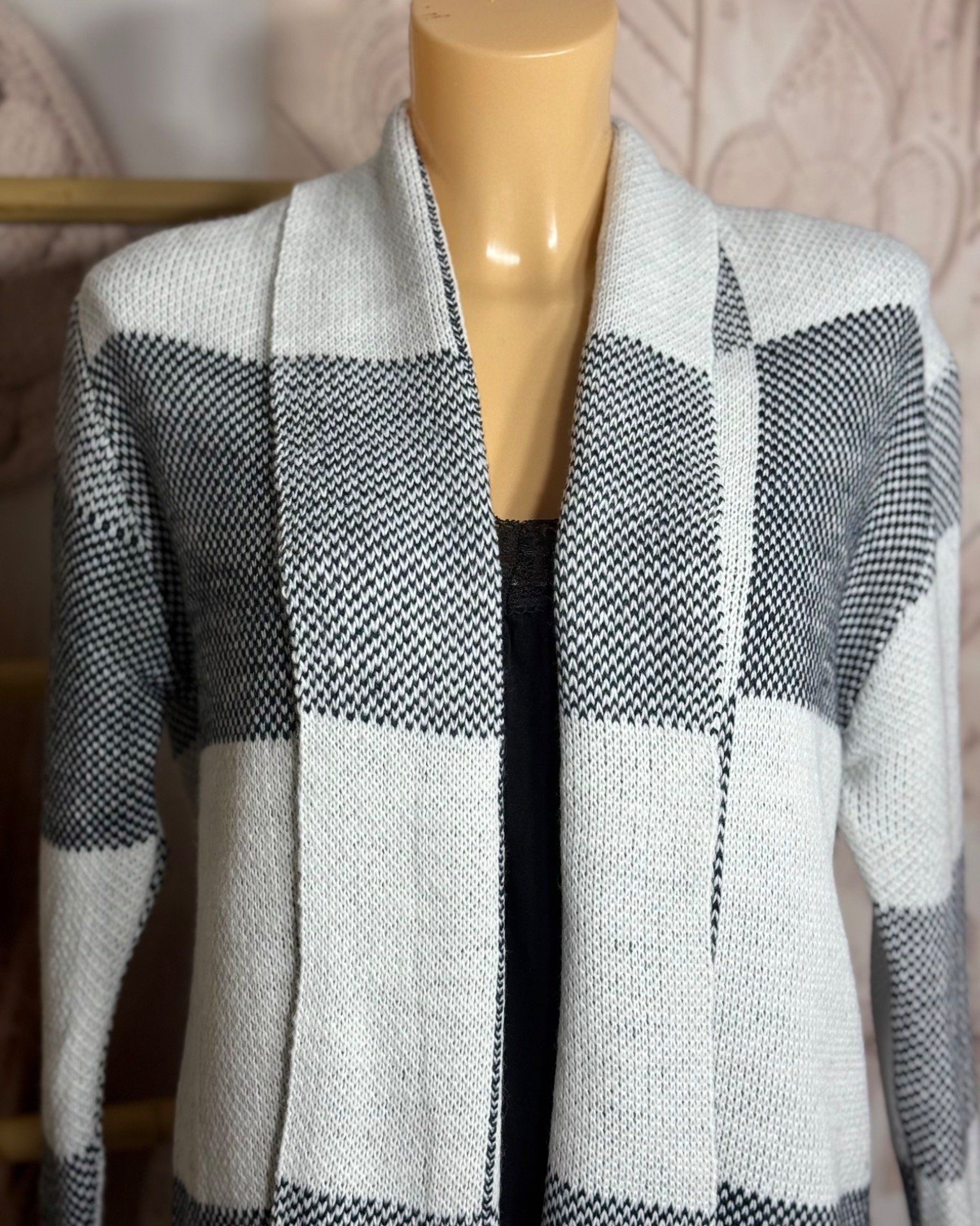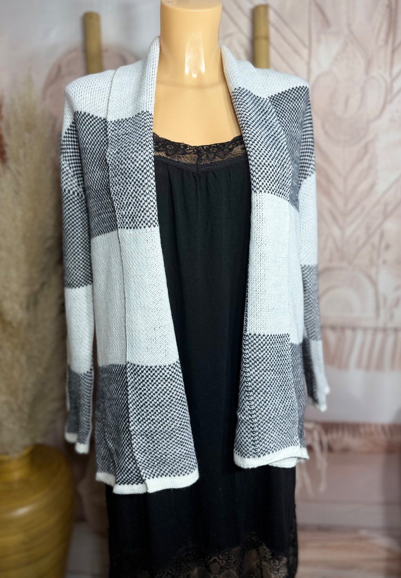 Gilet à pans SANS LAINE Jacquard carreaux écru gris chiné du 36 au 44