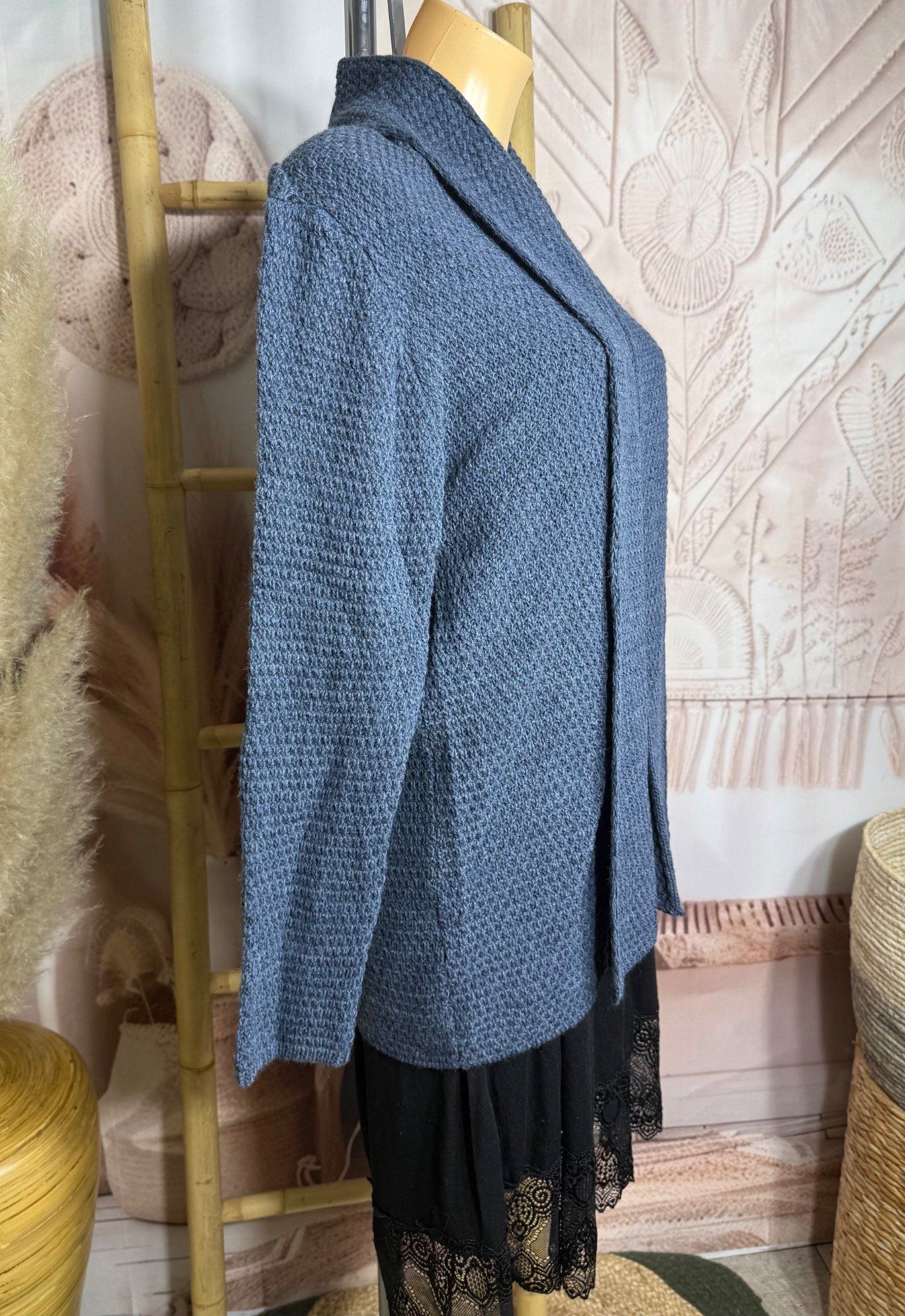 Gilet à pans SANS LAINE maille nid d'abeille bleu pétrole du 36 au 44