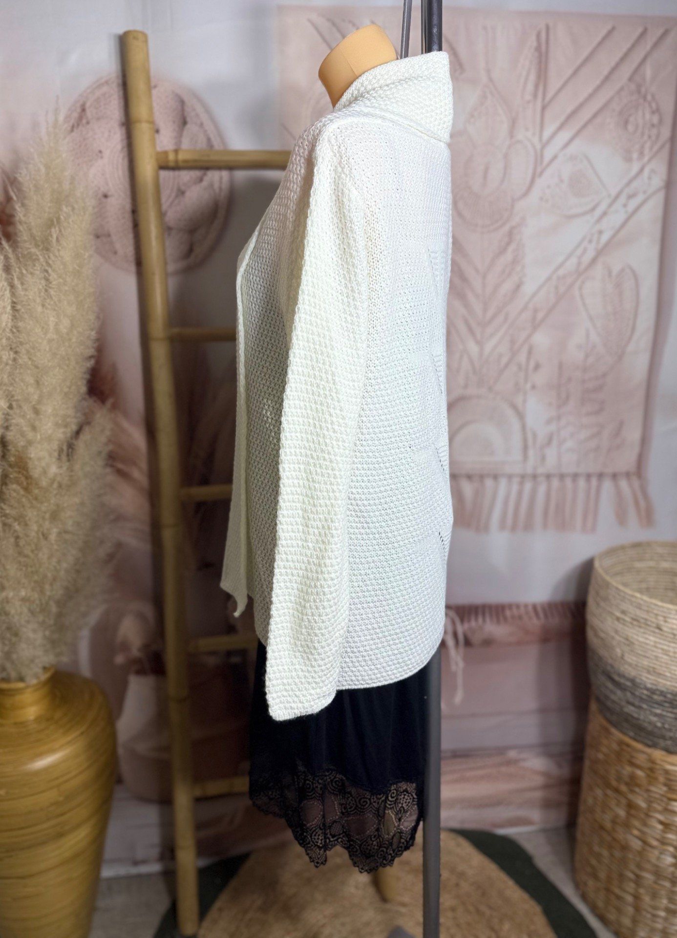 Gilet à pans SANS LAINE maille nid d'abeille crème du 36 au 44