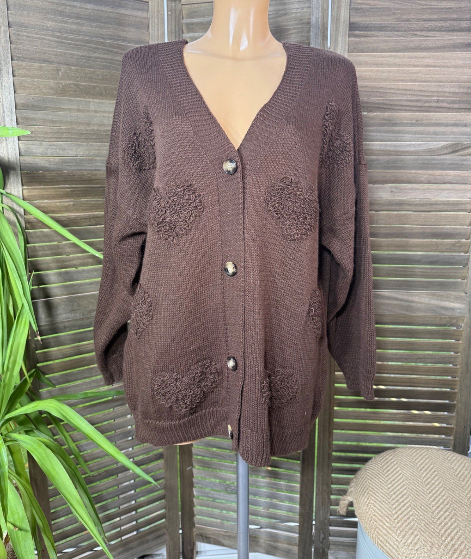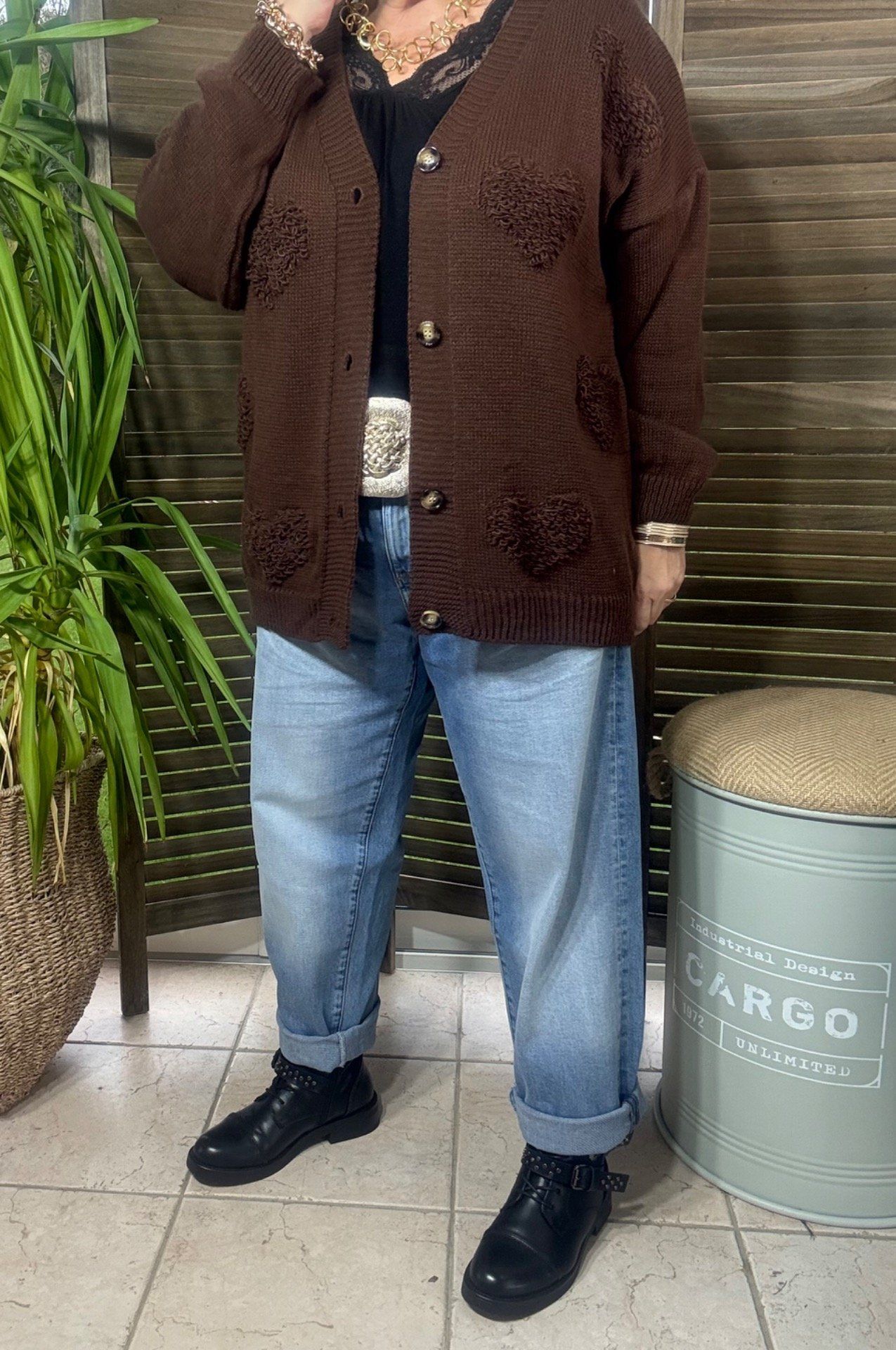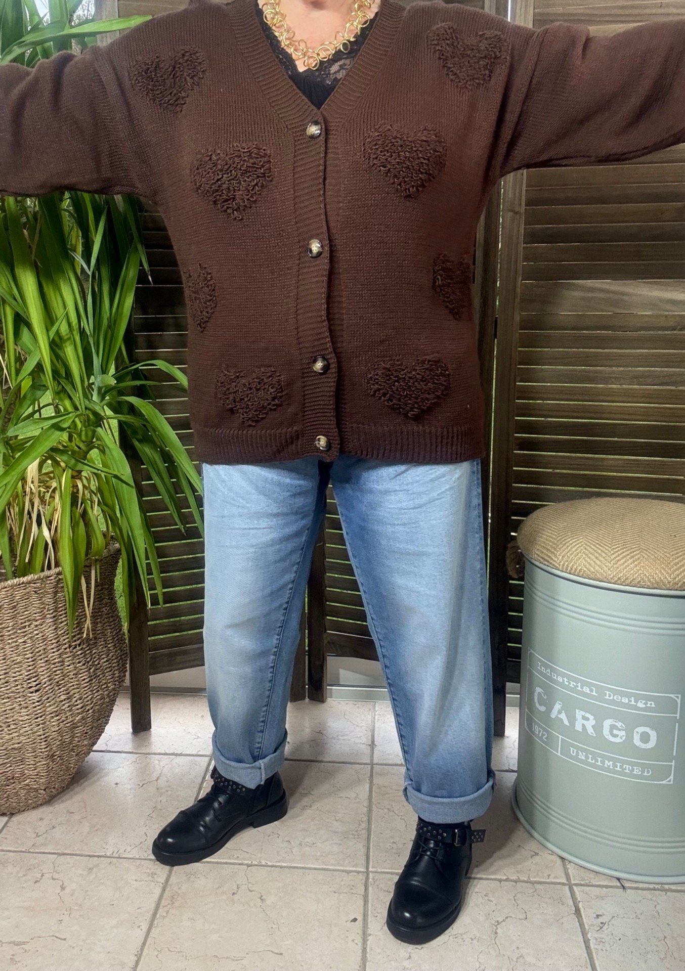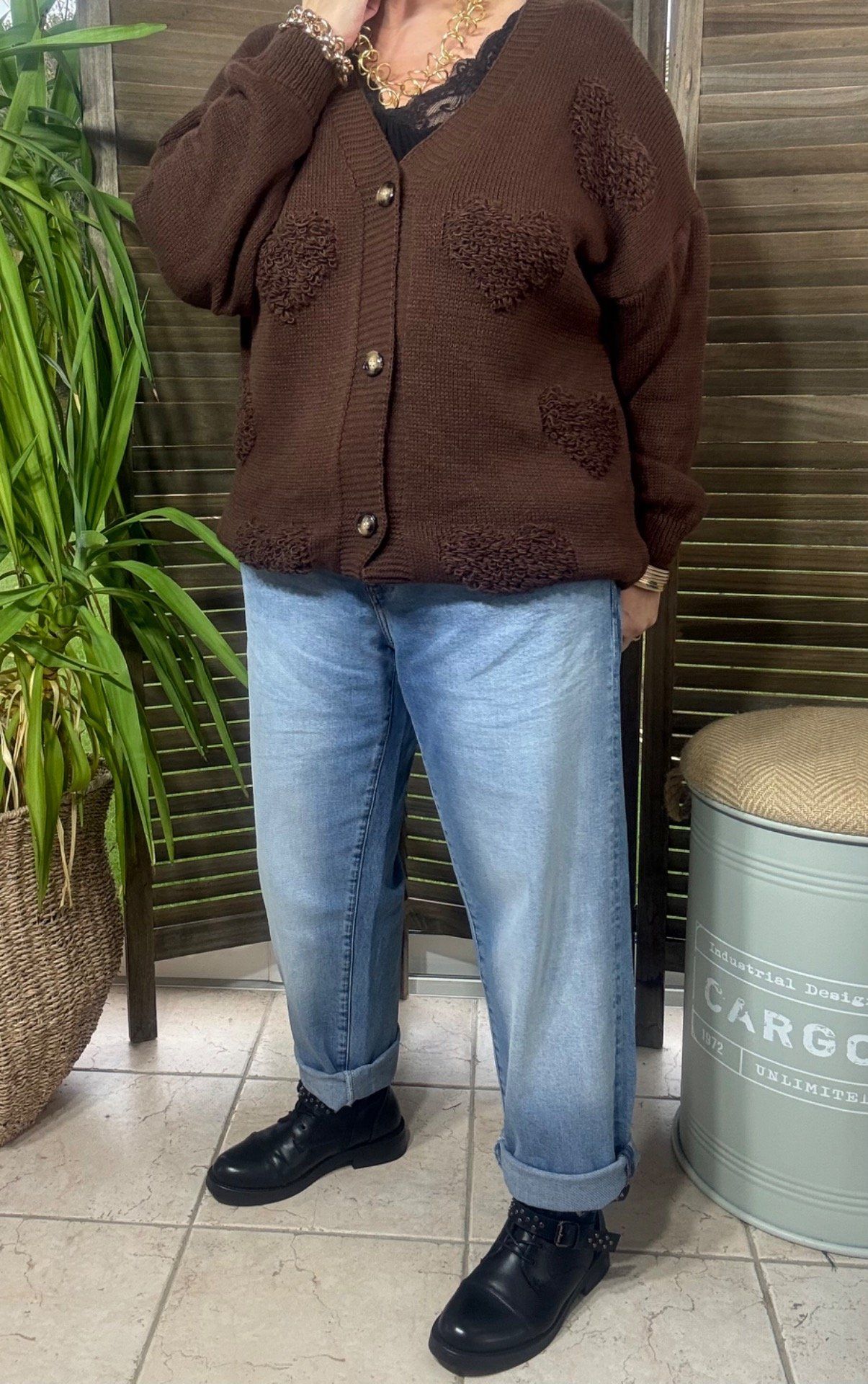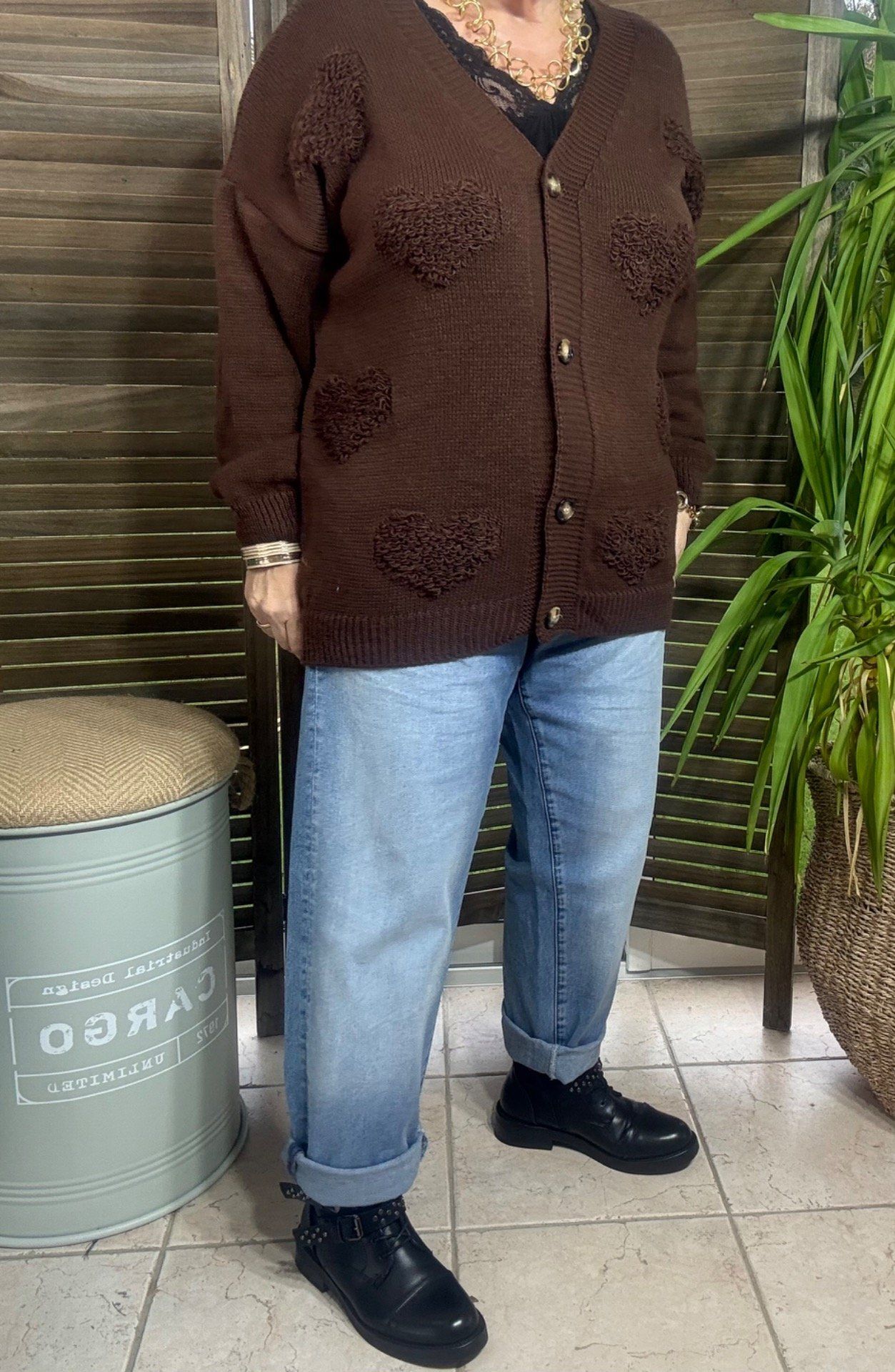 Gilet ample sans laine chocolat Coeurs bouclette en relief du 38 au 50 et même +